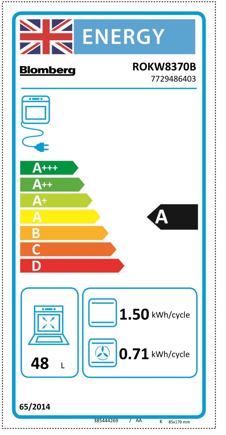 Blomberg's ROKW8370B is designed with a clean black finish and a glass door, adding a modern touch to your kitchen. The durable construction and high quality materials ensure long lasting performance. The oven comes with a 5 year guarantee, providing peace of mind and assurance of its quality.