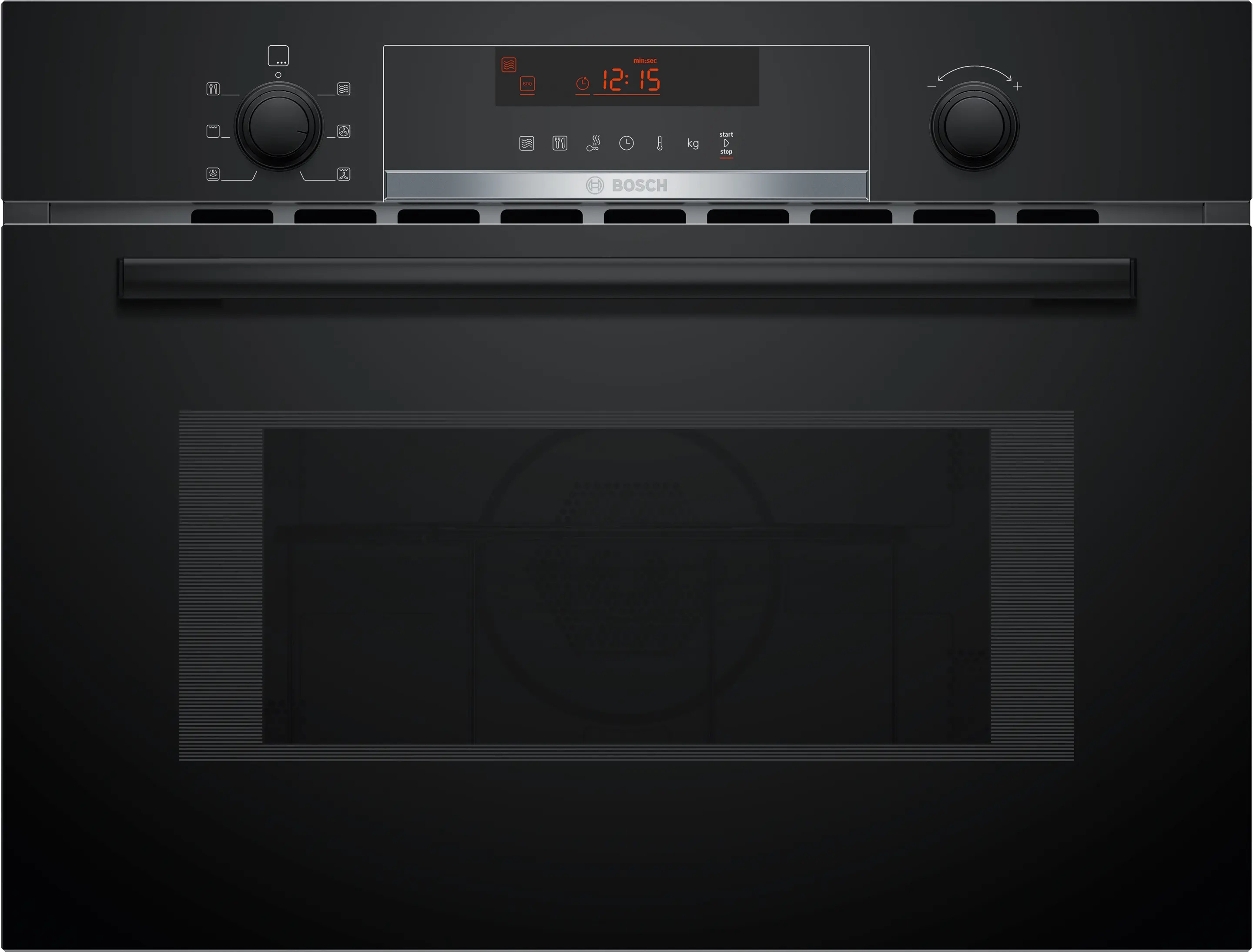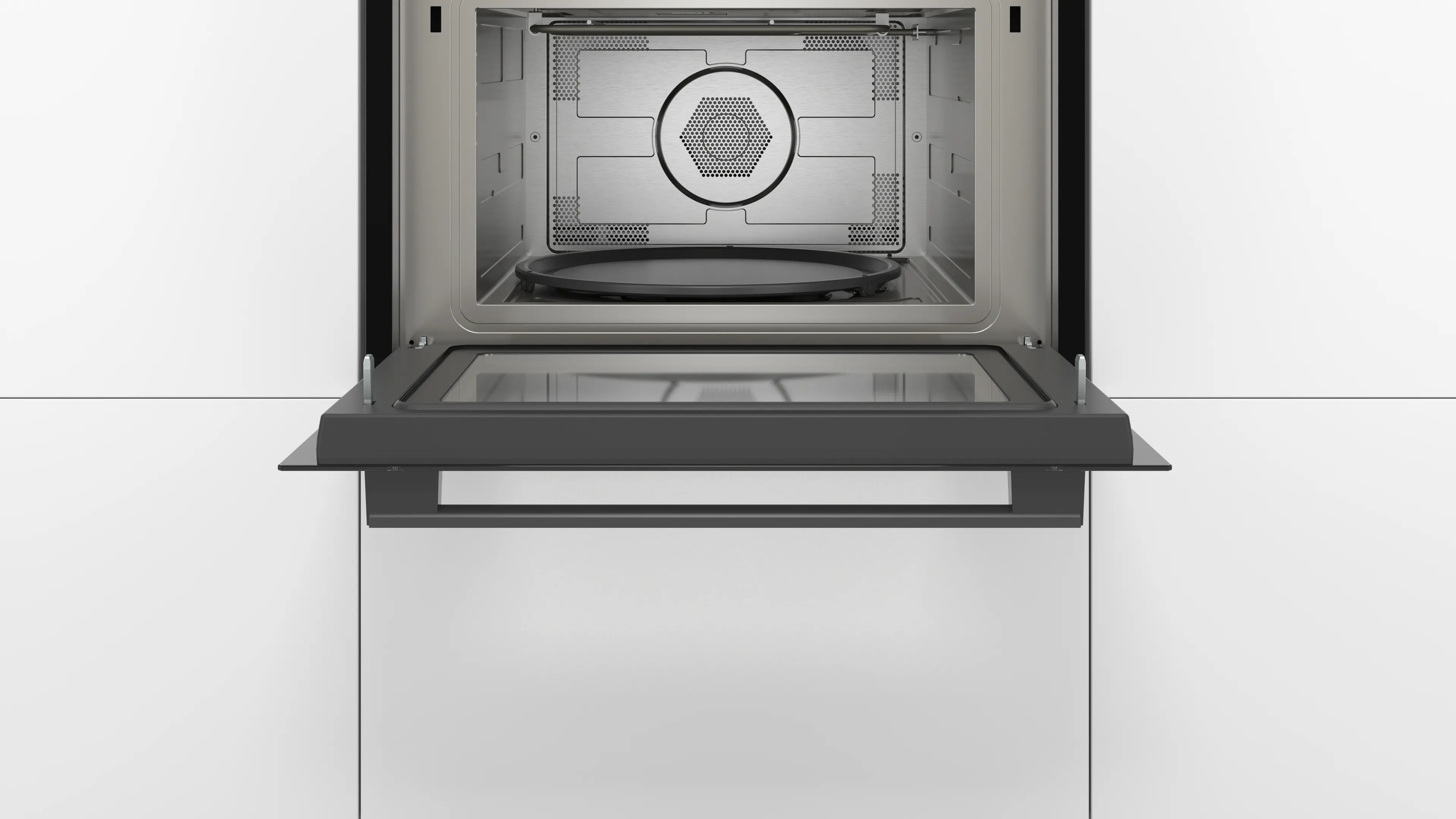 The Bosch CMA583MB0B Series 4 Built-In Combination Microwave Oven has a spacious 44L capacity and a wide range of cooking functions meaning it is well suited to modern kitchens looking for a compact yet capable appliance.