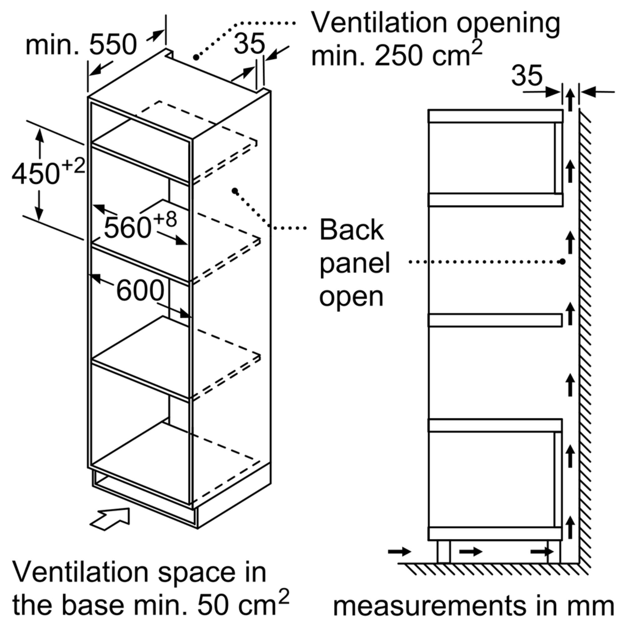 - Depth: 570 mm