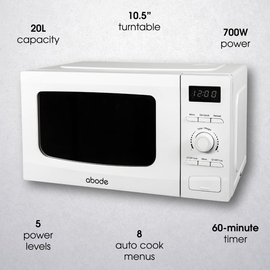 This stylish white microwave packs a punch with 700W of power, making mealtimes quick and easy. With a generous 20L capacity, it’s perfect for everything from solo meals to family favourites.