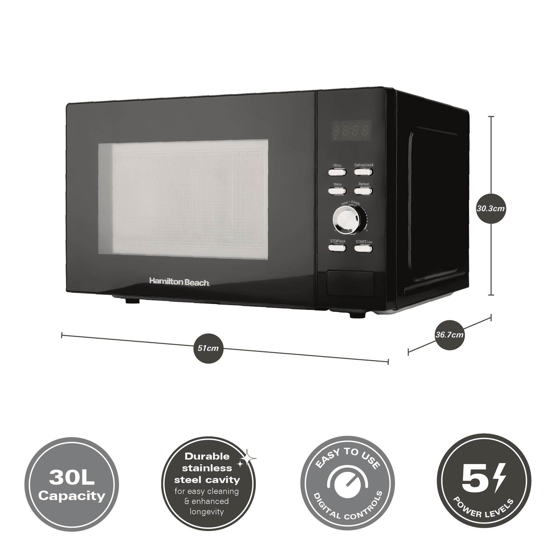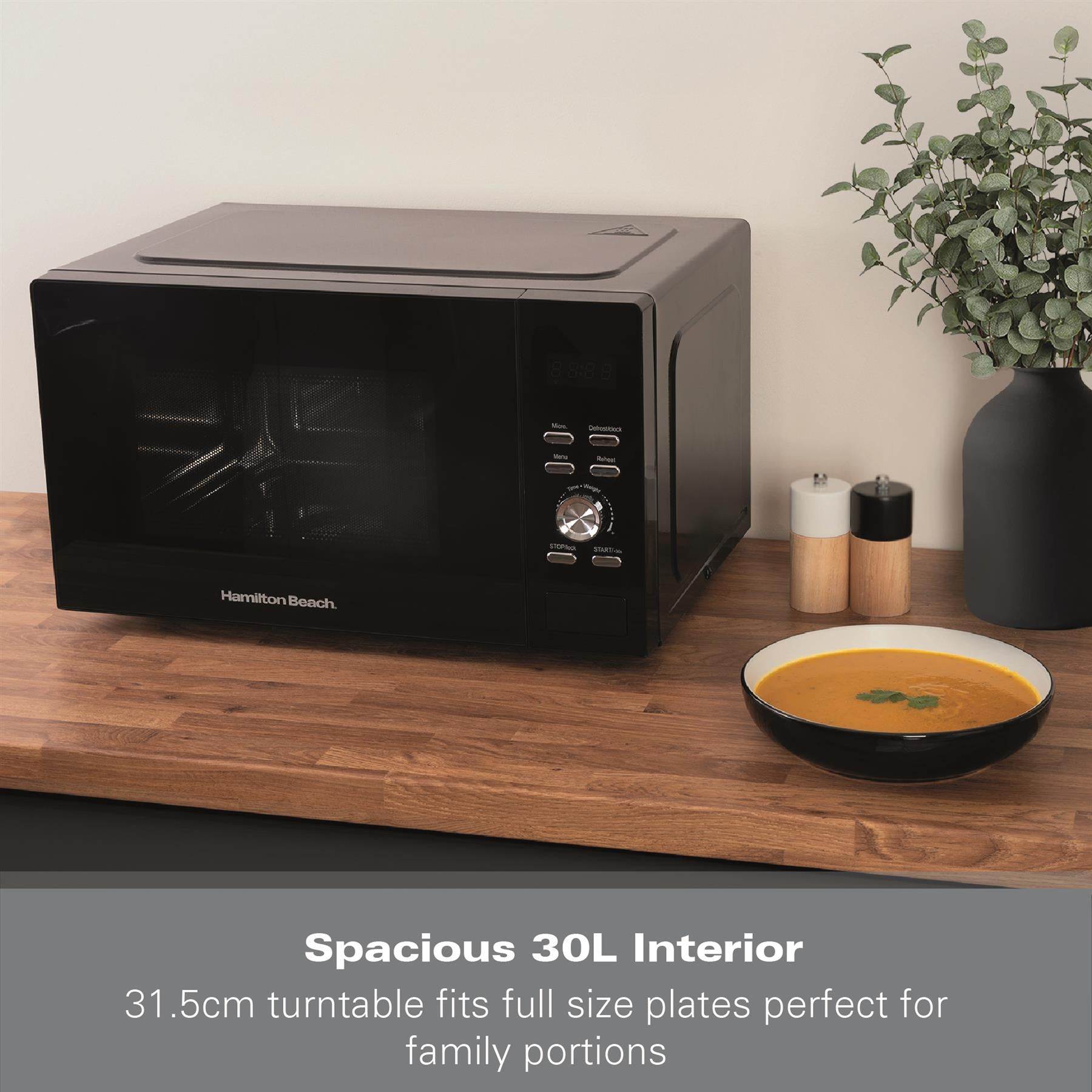 The Hamilton Beach HB30FUXP04S 30L black large family microwave combines generous capacity with practical features, making it a reliable choice for busy households. With 950W of power, multiple cooking levels, and intuitive controls, it streamlines meal preparation while maintaining a stylish, modern appearance.