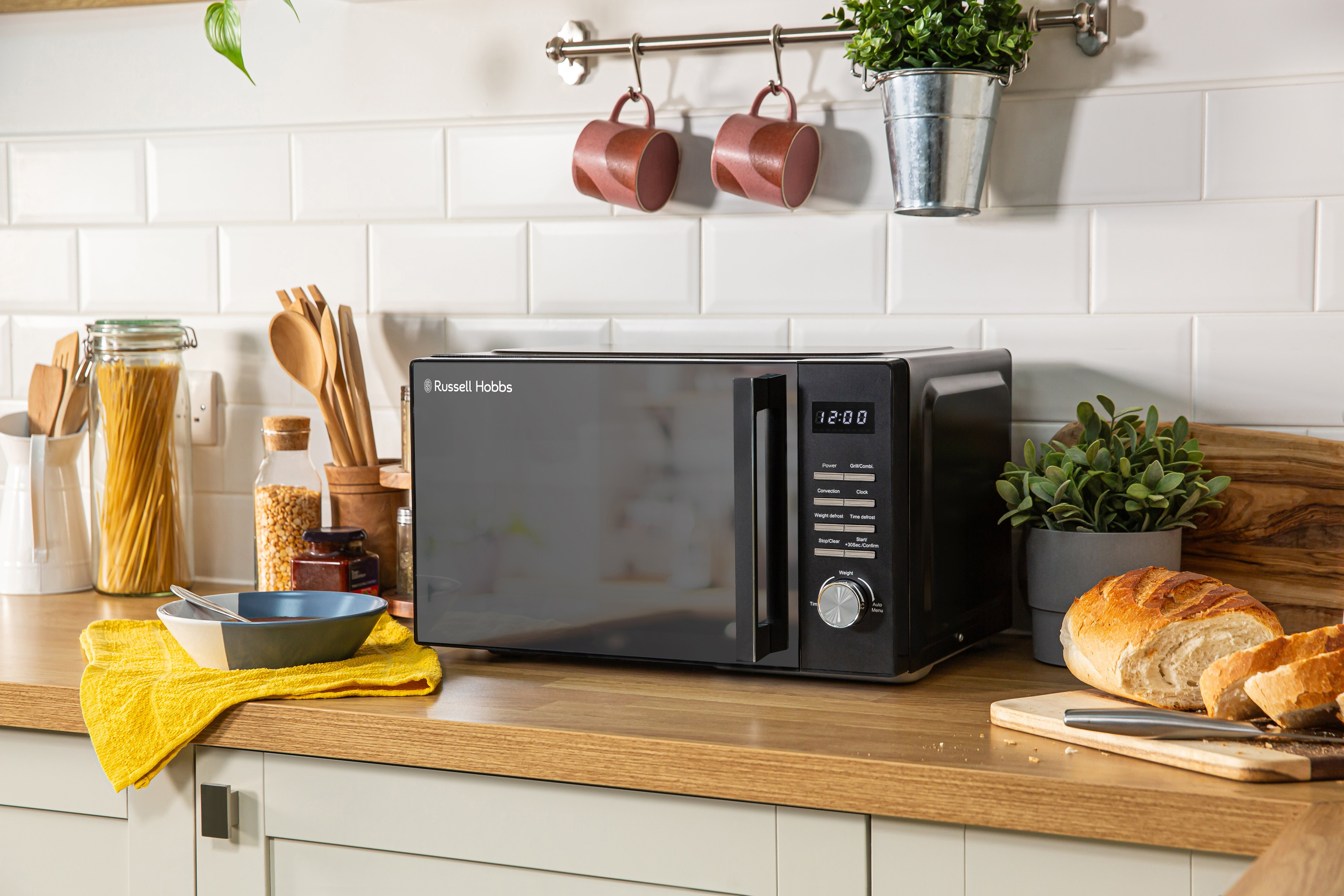 Equipped with a digital display and child lock feature, the microwave is both easy to use and safe for families with little ones. Control your cooking with a simple touch of the chrome buttons and enjoy peace of mind. Get ready to revolutionise your kitchen experience with the Russell Hobbs RHM2346B 23 Litres Black Combination Microwave.