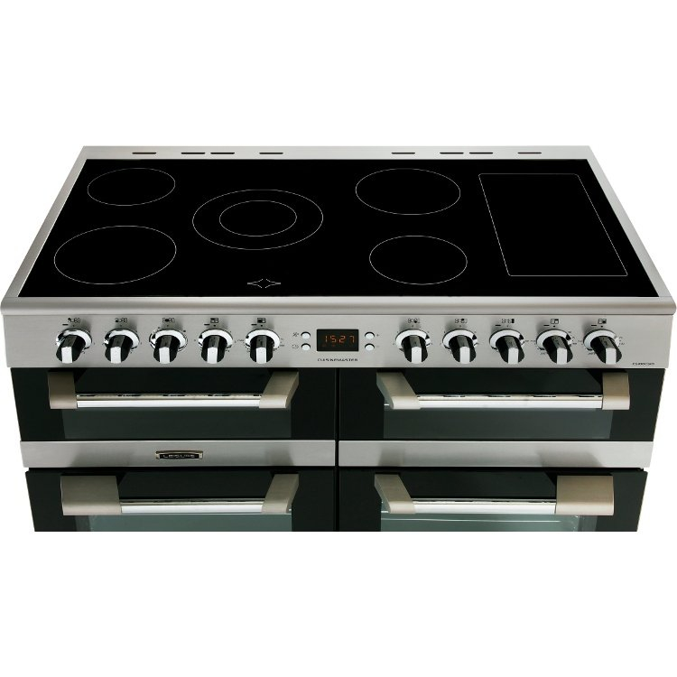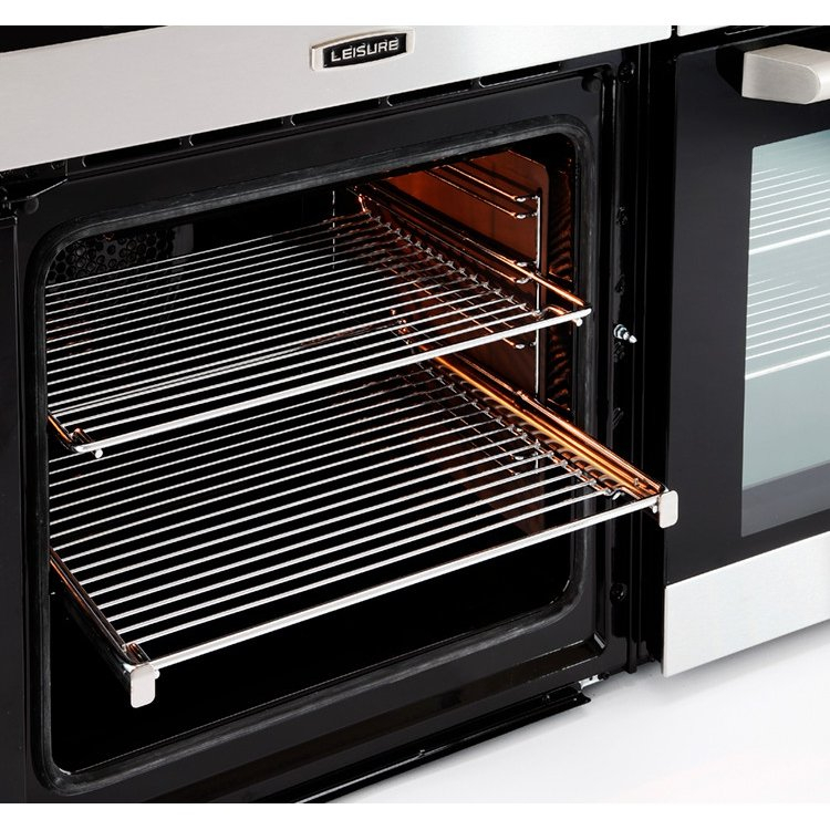 Catalytic liners in the main and second ovens assist with cleaning by absorbing grease and food residue during use, while the third oven features an easy clean enamel interior. Removable inner glass doors and halogen lighting in both main cavities further support day to day convenience. The Leisure CS100C510X range cooker is a high-capacity electric range cooker designed to meet the needs of modern kitchens. With its professional level features and elegant finish, it delivers both practicality and style for everyday and occasion cooking alike.