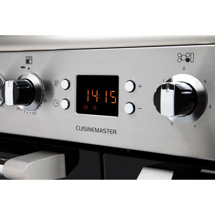 The Leisure CS100C510X cuisinemaster 100cm electric range cooker with ceramic hob offers a refined blend of performance, capacity and contemporary design. Finished in stainless steel, this cooker is ideal for busy households or those who enjoy entertaining, with three ovens, a separate grill and a spacious five zone ceramic hob with an additional warming zone for enhanced cooking flexibility.