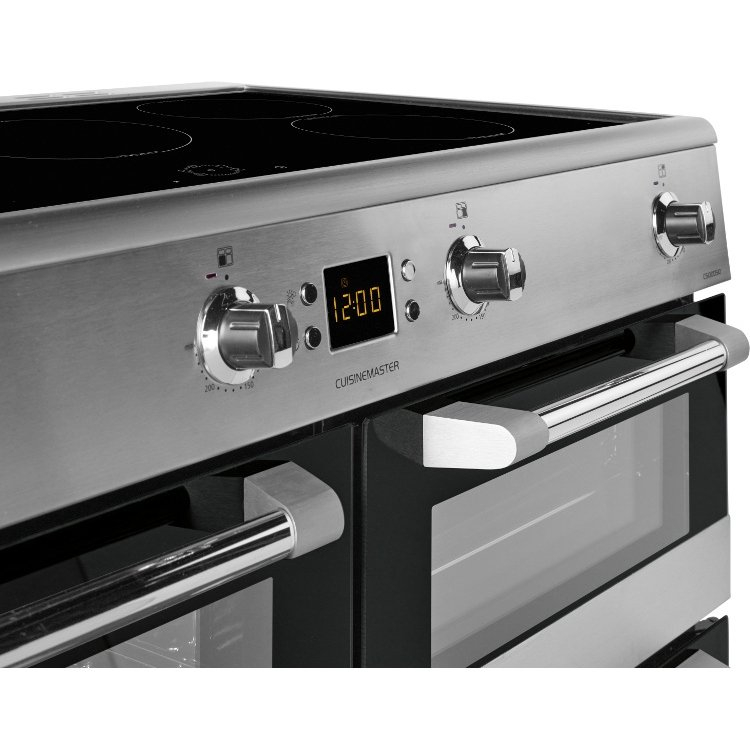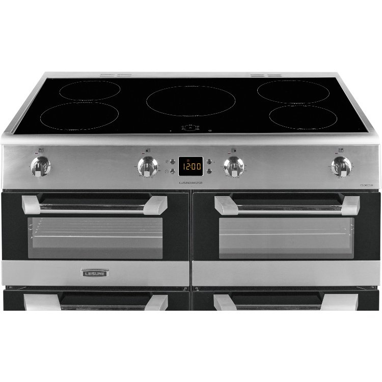 Maintenance is simplified with catalytic liners in the main and secondary ovens, which help to absorb and break down grease during cooking. Enamel interiors and removable door glass further support easy cleaning. Additional features such as an LED display, rotary controls, and halogen interior lighting enhance usability. The Leisure CS100D510X range cooker offers a professional-level cooking solution with the benefits of induction efficiency, extensive oven space, and thoughtful design making it ideal for those who value both performance and style in the kitchen.
