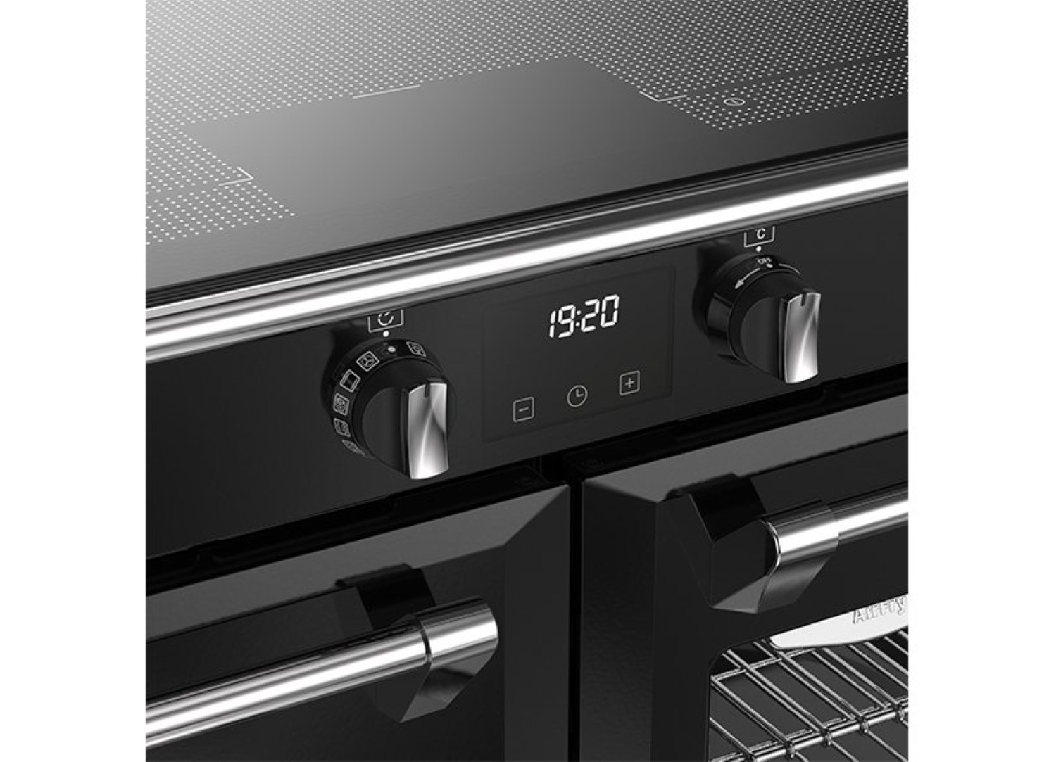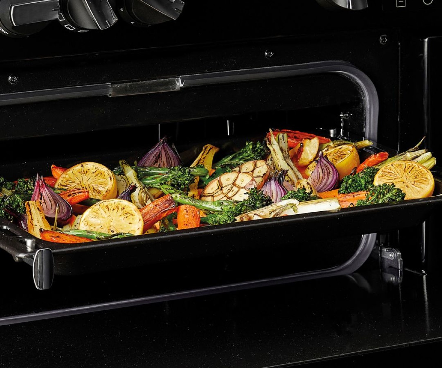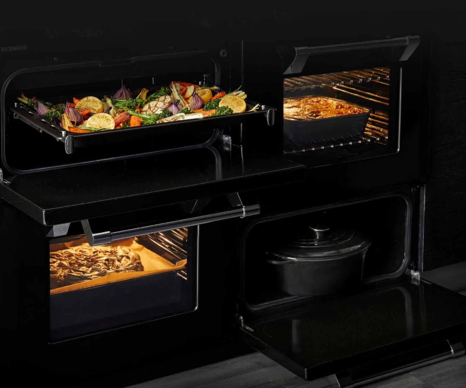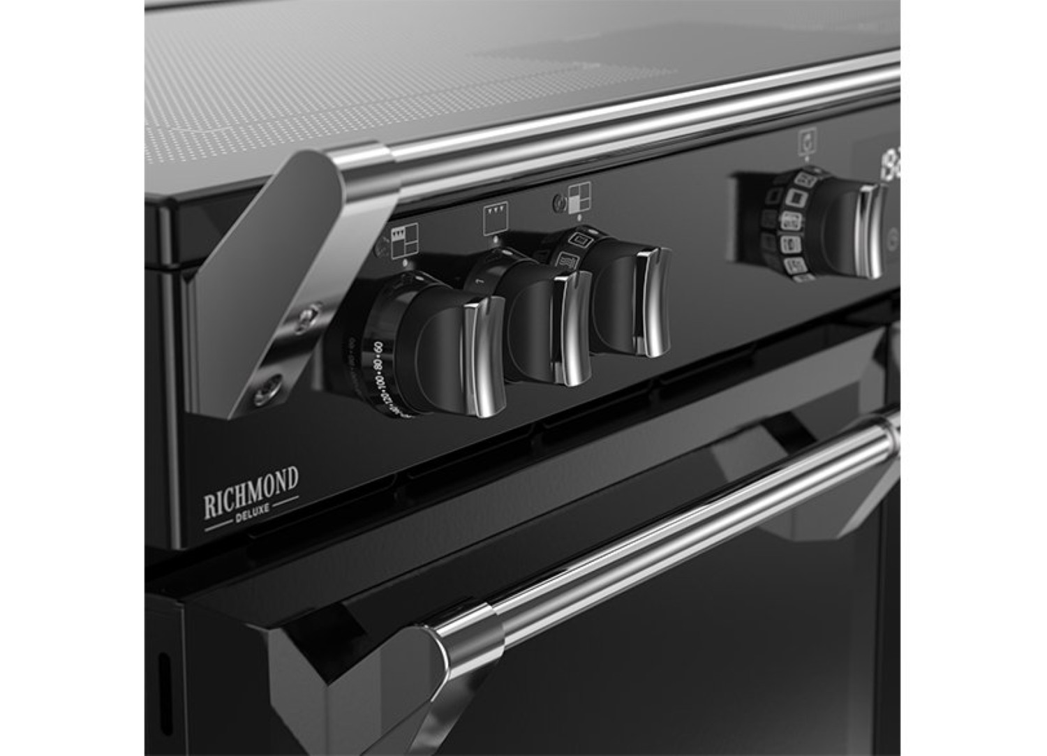 Combining luxurious style with cutting edge innovation, the Richmond Deluxe is designed to fit seamlessly into any kitchen. Its black gloss finish and metal, chrome handles add a touch of elegance, while practical features such as adjustable feet, rear wheels, and a fascia cooling system ensure ease of installation and operation. The cooker is also equipped with a range of accessories, including an AirFry tray and a Steam & Infuse kit, to enhance your culinary creations.