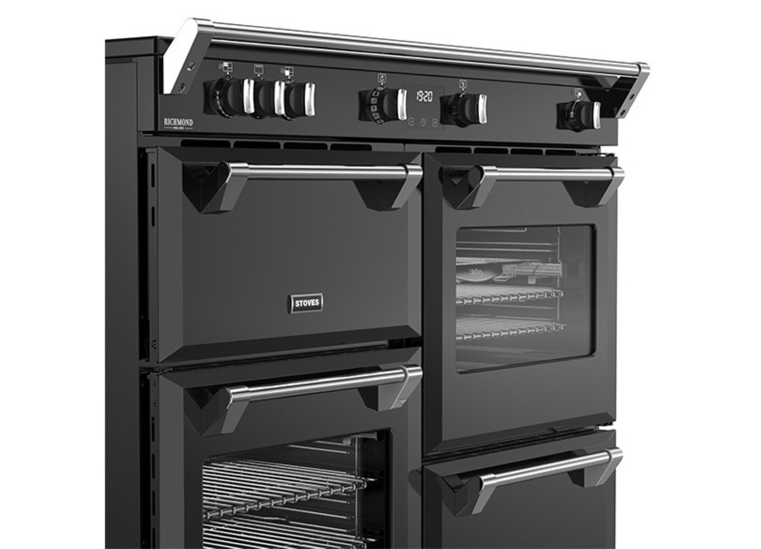 Stoves' 444411880 Richmond Deluxe zoneless induction range cooker is a highly sophisticated and versatile appliance designed to future proof your cooking experience. With its innovative FreedomFLEX™ zoneless induction system, multiple oven options, and advanced features, this range cooker is perfect for culinary enthusiasts who seek both style and functionality in their kitchen.