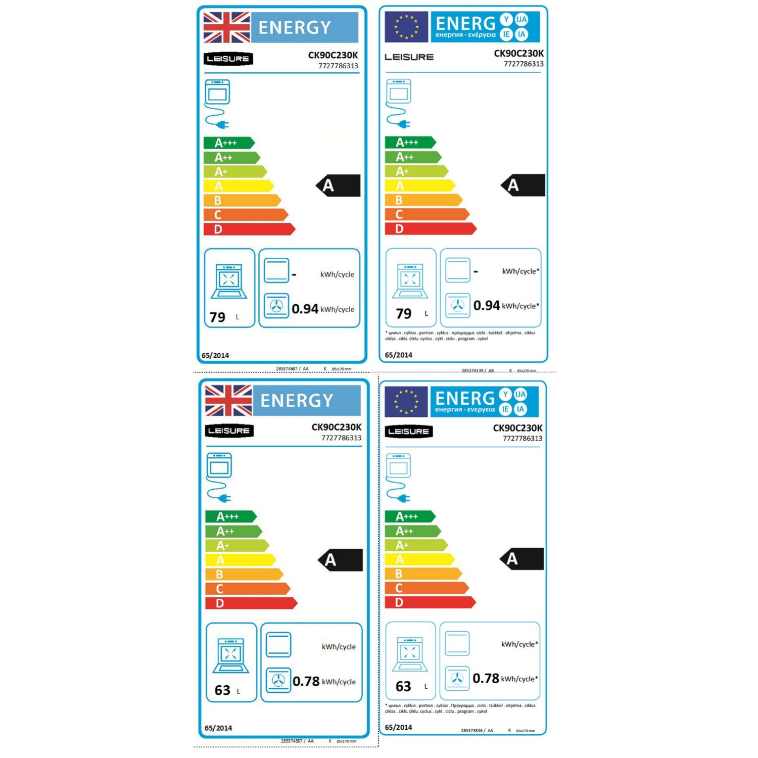 Cook Clean catalytic liners are fitted in both ovens to assist with cleaning. These liners absorb grease and cooking residues, breaking them down at high temperatures to reduce the need for manual scrubbing. The Leisure CK90C230K Cookmaster range cooker combines generous capacity, user-friendly features, and a sophisticated finish, making it a practical and reliable addition to any modern kitchen.