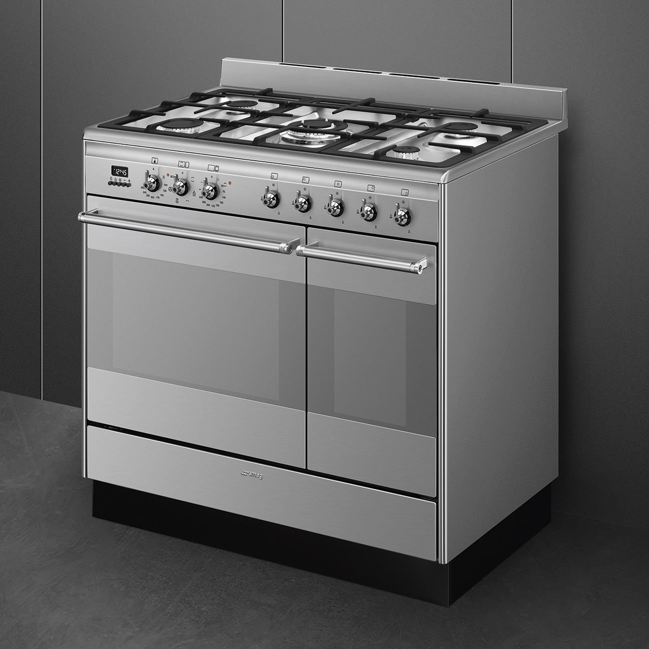 Composed of 2 ovens, the main of which is thermo ventilated, Smeg's SUK92MX9-1 delivers optimal cooking results every time. Their ventilated circular flow technology distributes heat evenly while the hob provides immediate gas temperature adjustments, giving you control over your cooking. The interior cavities have five cooking shelf heights, able to accommodate a huge variety of different dishes.