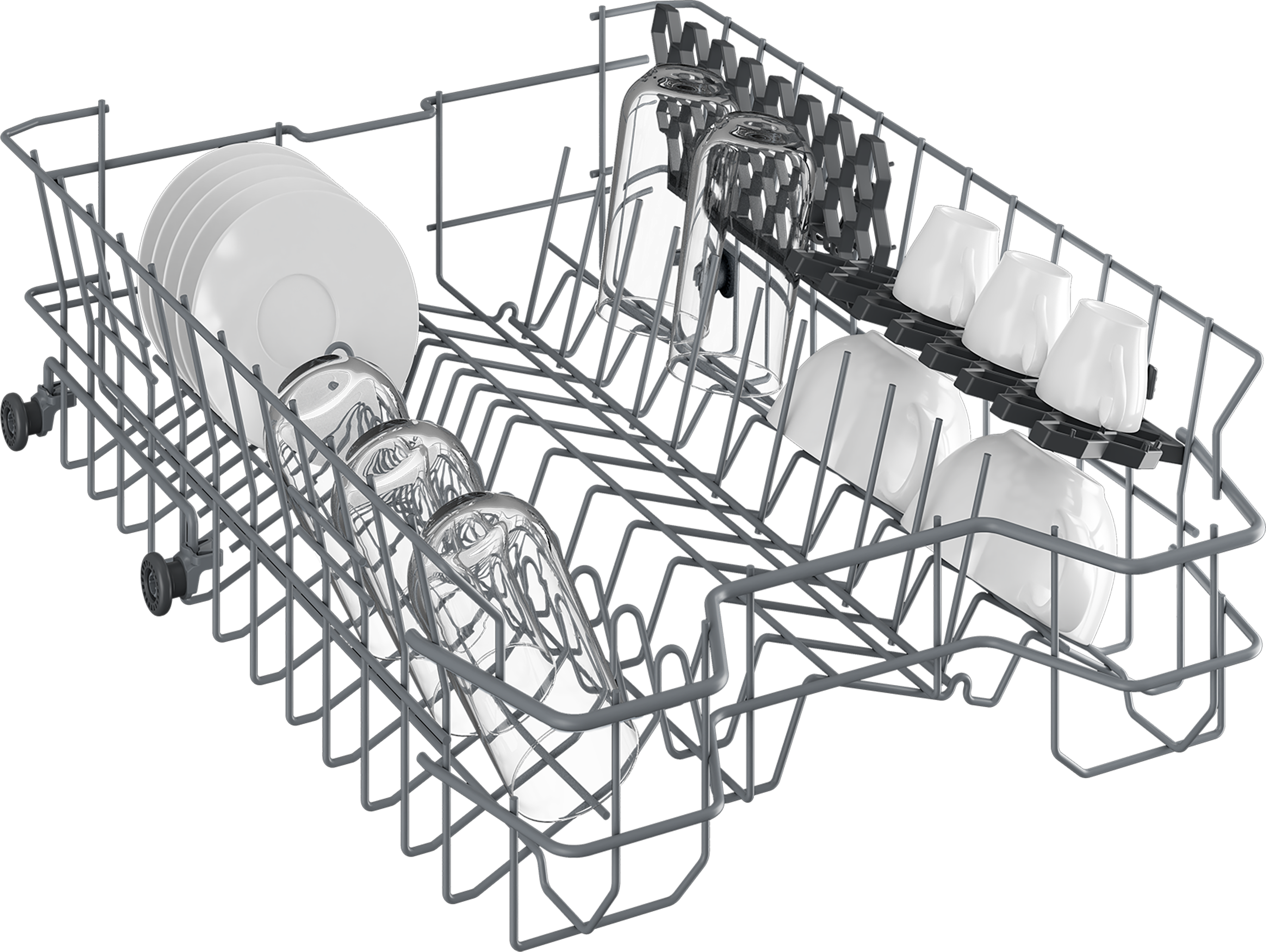 Designed for convenience, the DVS05C20W features foldable plate supports for larger items and a sliding cutlery basket that can be removed to accommodate awkwardly-shaped dishes. This flexibility ensures you can load and wash a variety of items with ease.