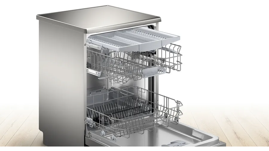 Load up to 13 places settings into your new Bosch Serie 2 Dishwasher with ease thanks to the triple Rackmatic system and VarioDrawer design.