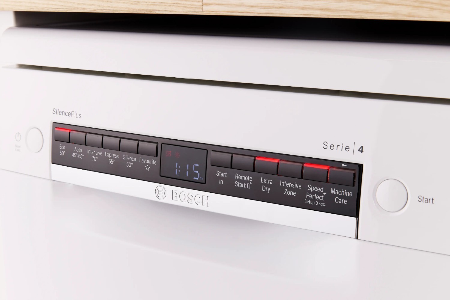 Bosch's SPS4HMW49G offers a range of user friendly features, including a start delay time of up to 24 hours, allowing you to schedule washes at your convenience. The EcoSilence Drive ensures efficient and extra silent operation, while the aquasensor and detergent detection optimize water and detergent usage for each load.