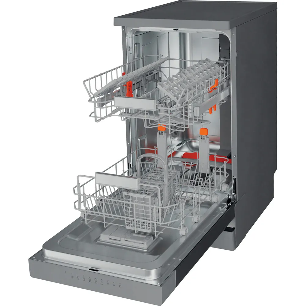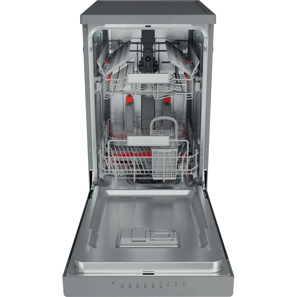 The Hotpoint HSFO3T223WXUKN 45cm Wide Slimline Dishwasher is designed to fit smaller kitchens, it still offers impressive performance, flexible loading, and advanced cleaning features for everyday convenience.