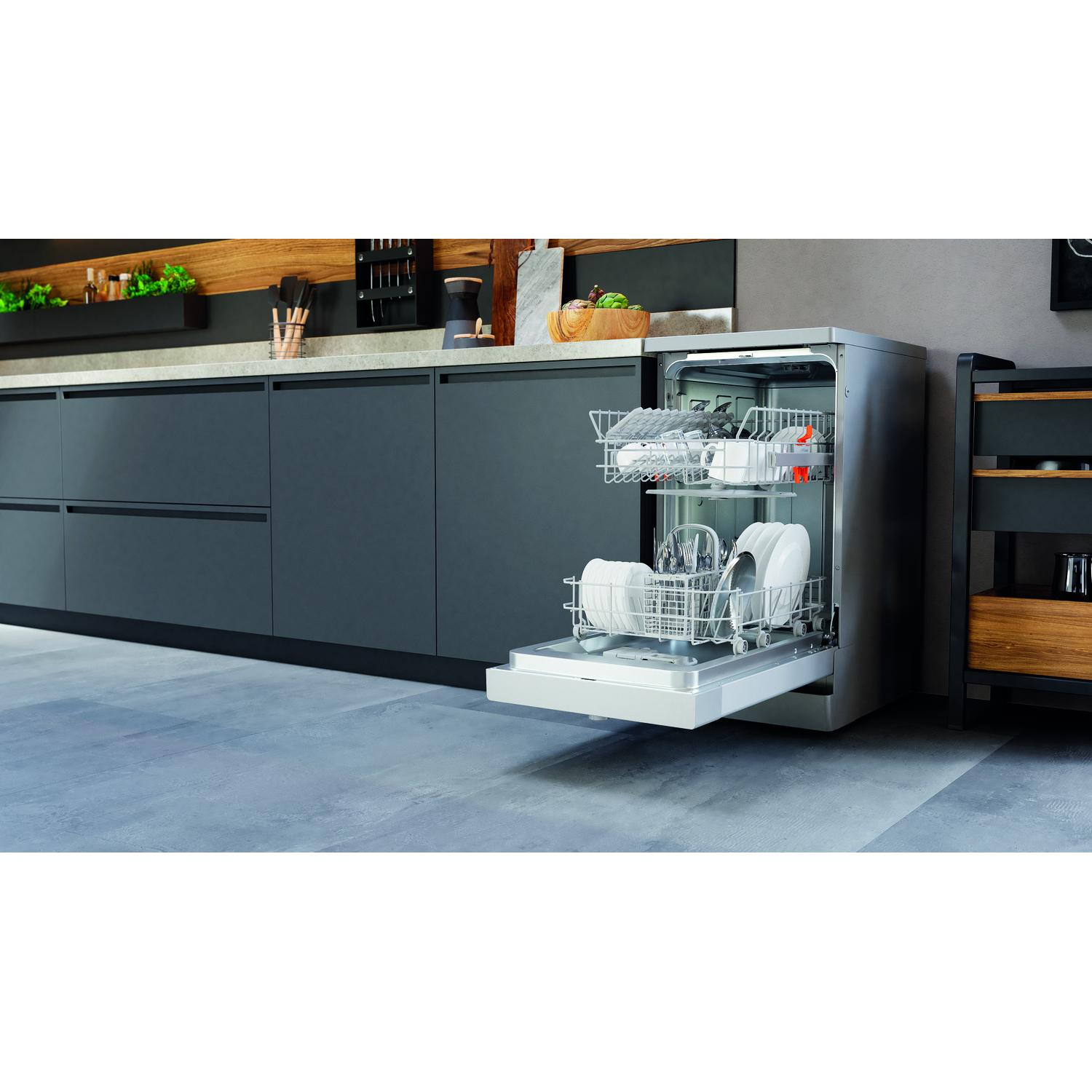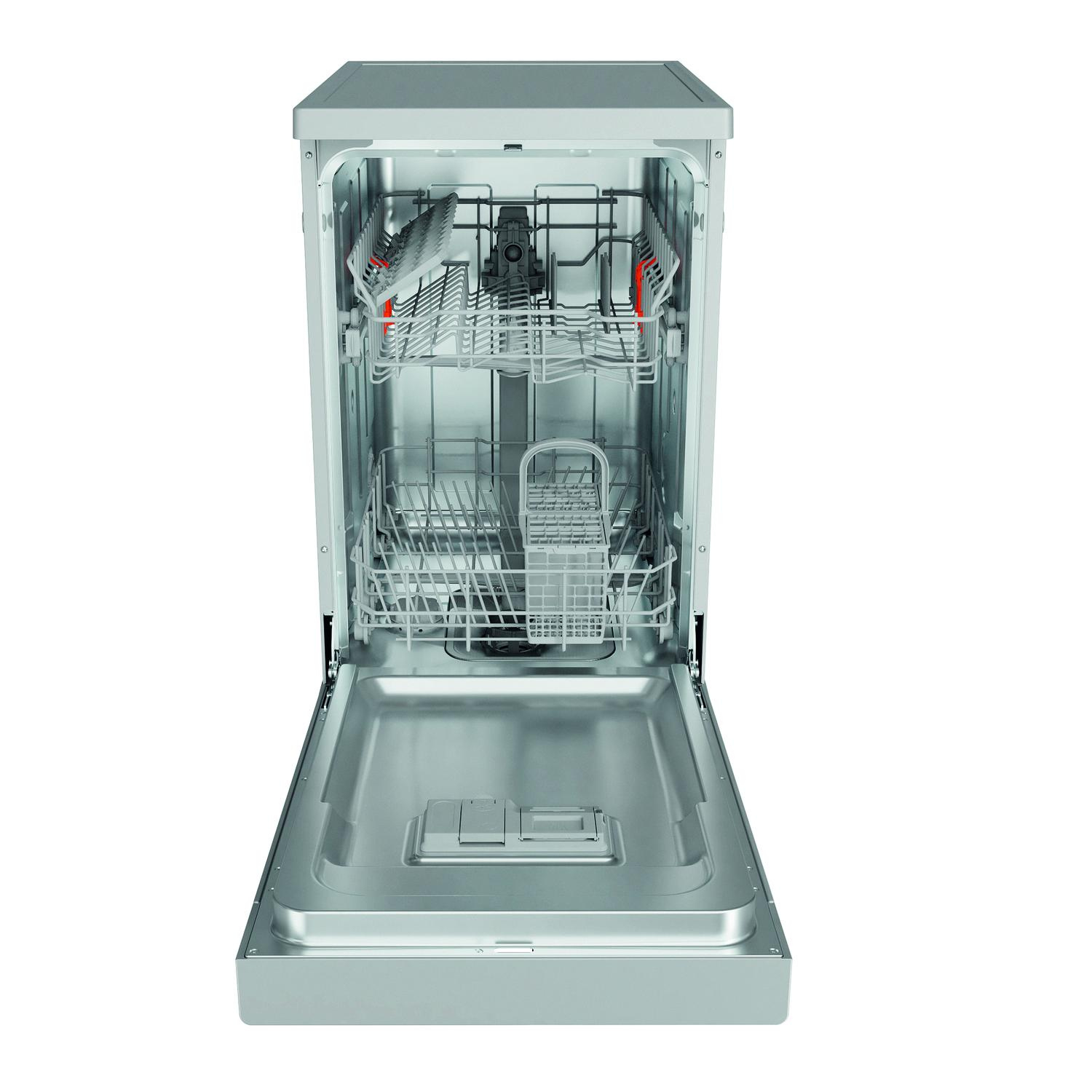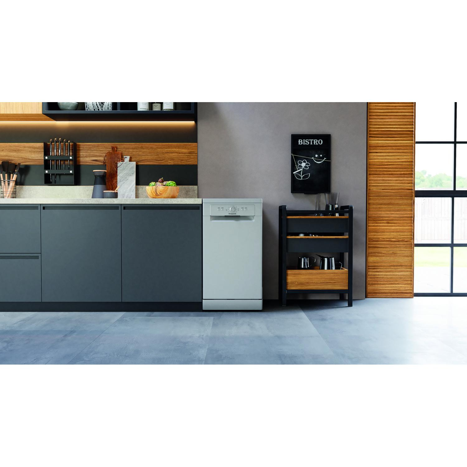 Finished in a sleek silver color, the Hotpoint HF9E1B19SUK not only performs well but also adds a touch of style to your kitchen. Its practical features, combined with its compact design, make it a great choice for those looking to maximise space without compromising on dishwashing capabilities.