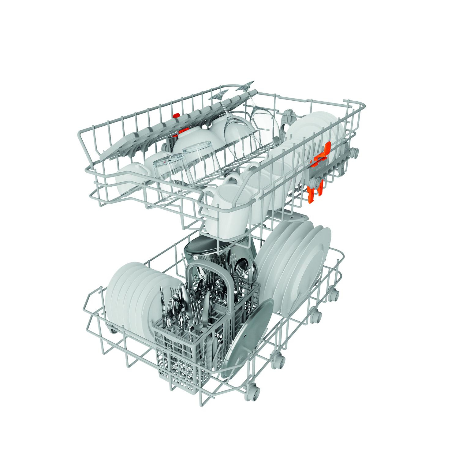 At just 45cm wide, the HF9E1B19SUK is perfect for kitchens where space is at a premium. Despite its compact size, it can handle up to 9 place settings, making it ideal for small households or those who prefer not to wash dishes by hand. The adjustable upper basket and presence of a cutlery basket ensure flexible loading options.