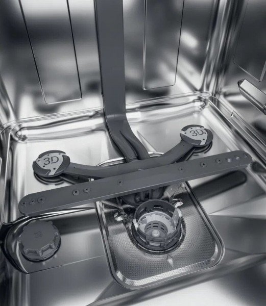 *Comparison between Whirlpool dishwasher models with standard tub and Whirlpool dishwasher models with MaxiSpace tub. Extra space refers to the increased total loading area among the three racks. **Average water power percentage increase versus non 3D Zone Wash option activated mode ***Tested by VDE Prüf und Zertifizierungsinstitut GmbH.