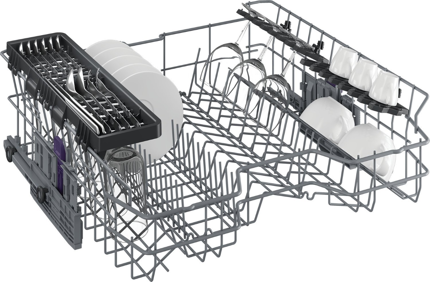 The DIN15C20's upper basket that can be set to three different height levels, providing extra space for larger dishes when needed. Additionally, the removable sliding cutlery basket and folding plate supports make loading easy, all while maximising space.