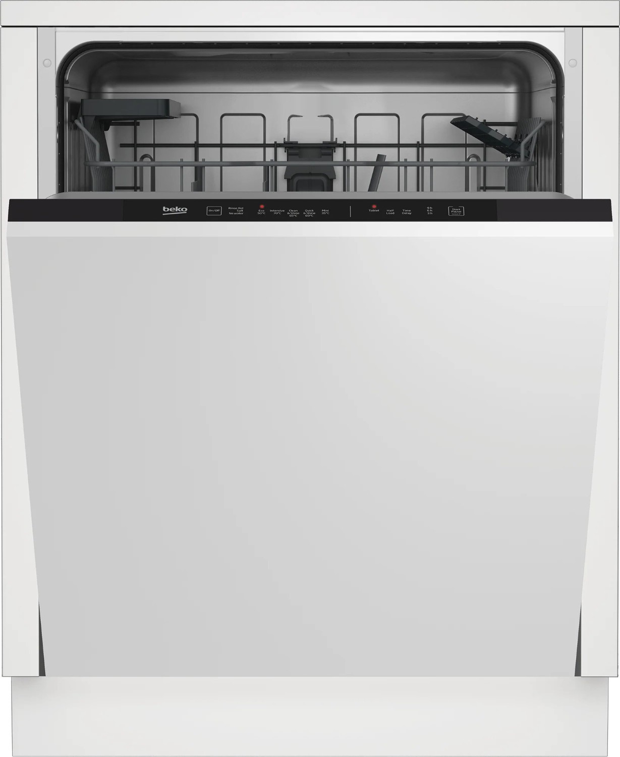 Equipped with a touch controls, Beko's DIN15C20 allows for easy operation. The interior is designed for convenience with an indicator light for both salt and rinse aid levels. A half load option is also available, efficiently cleaning smaller loads while saving both time and energy.