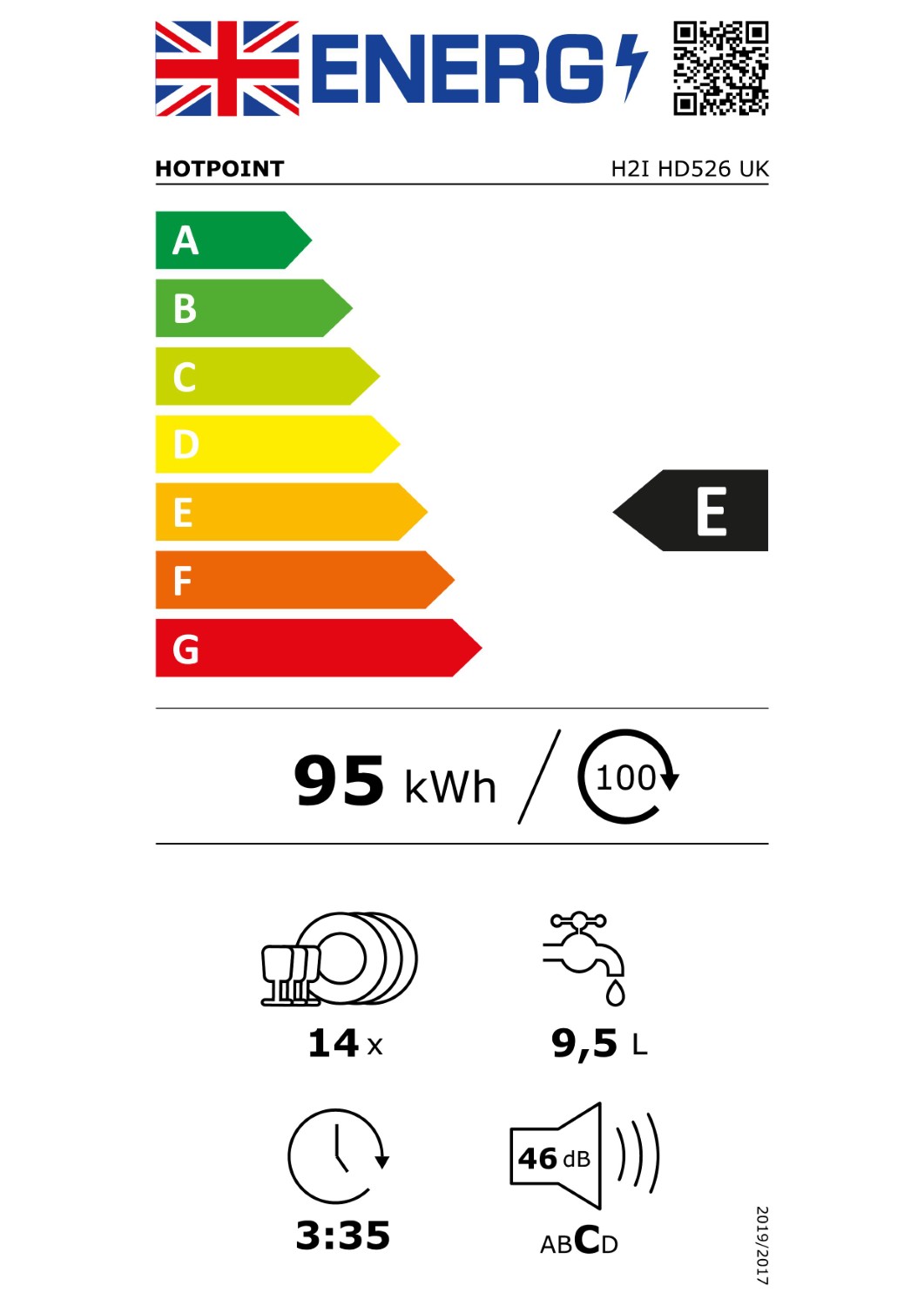 Hotpoint's H2IHD526 is a full size, built in dishwasher designed to accommodate up to 14 place settings. This large capacity makes it ideal for families or those who entertain frequently. This dishwasher combines style with functionality, offering a range of features to ensure your dishes are cleaned efficiently and effectively.
