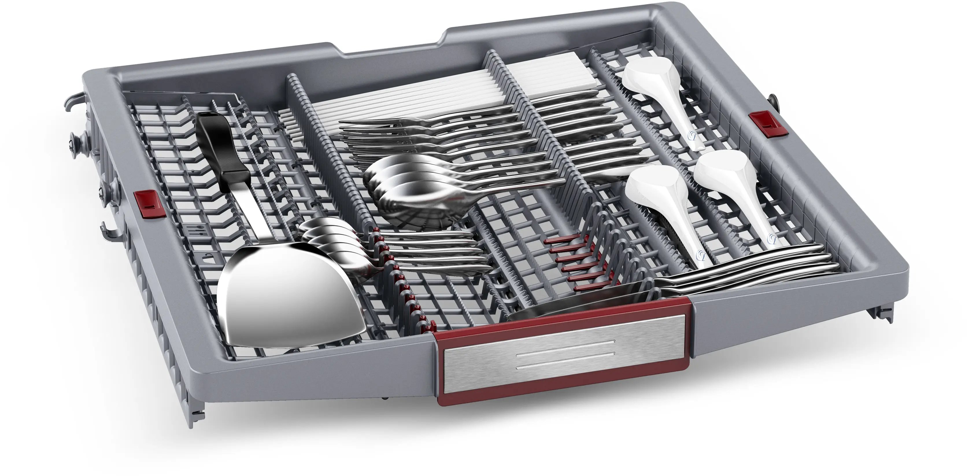 The Flex 3 Baskets system, including a Flex Cutlery Drawer and ball bearing wheels, offers maximum flexibility and ease of use. This design allows for smooth and easy loading, accommodating a variety of dish sizes and shapes, making it perfect for both everyday use and special occasions.