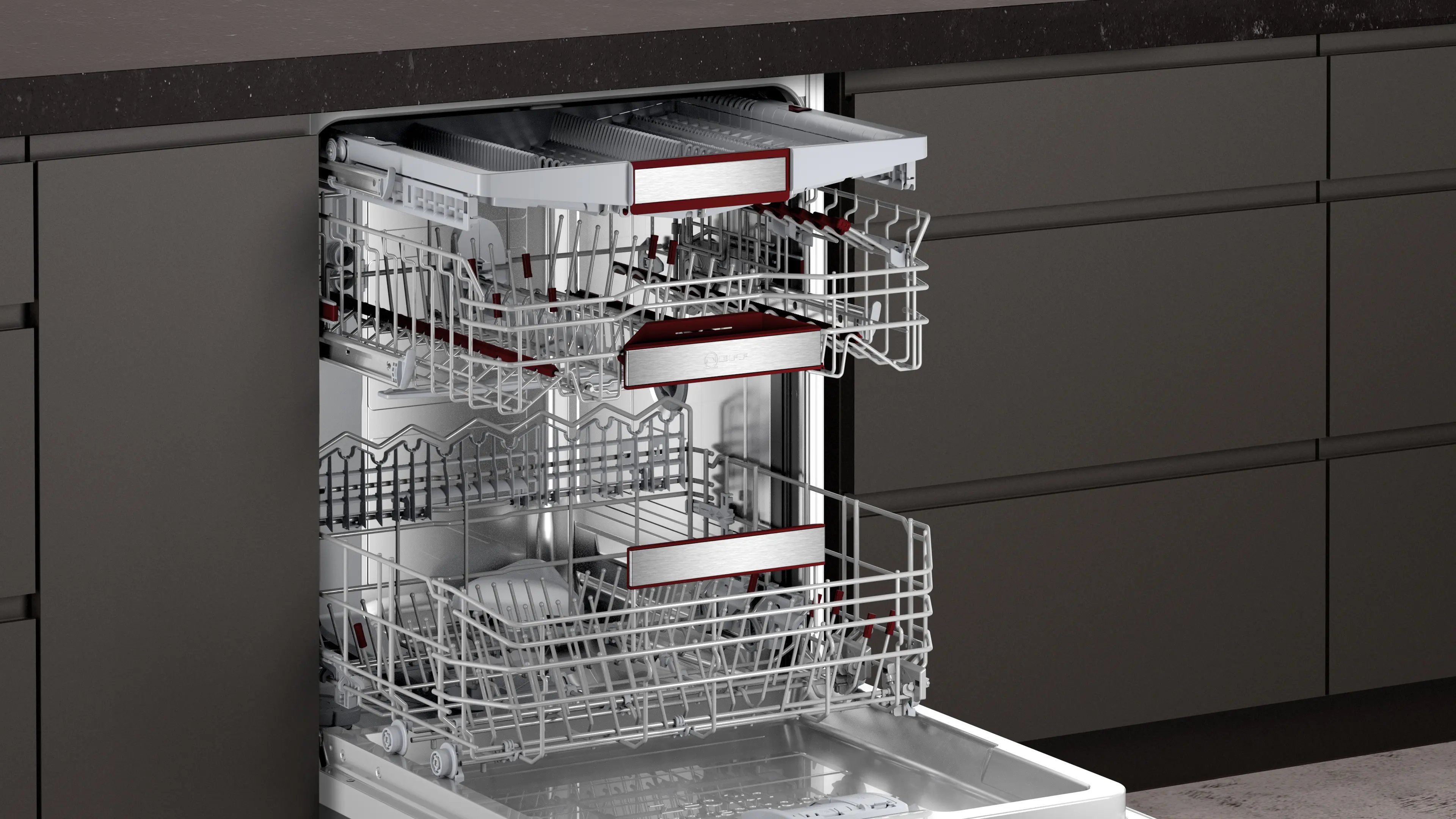 Rated with an energy efficiency class of A, Neff have engineered the S197YCX05G to consume less energy while delivering powerful cleaning performance. The eco programme uses just 9.5 litres of water per cycle, making it an environmentally friendly choice. Additionally, the dishwasher operates quietly with an airborne acoustical noise emission class of B, ensuring a peaceful kitchen environment.