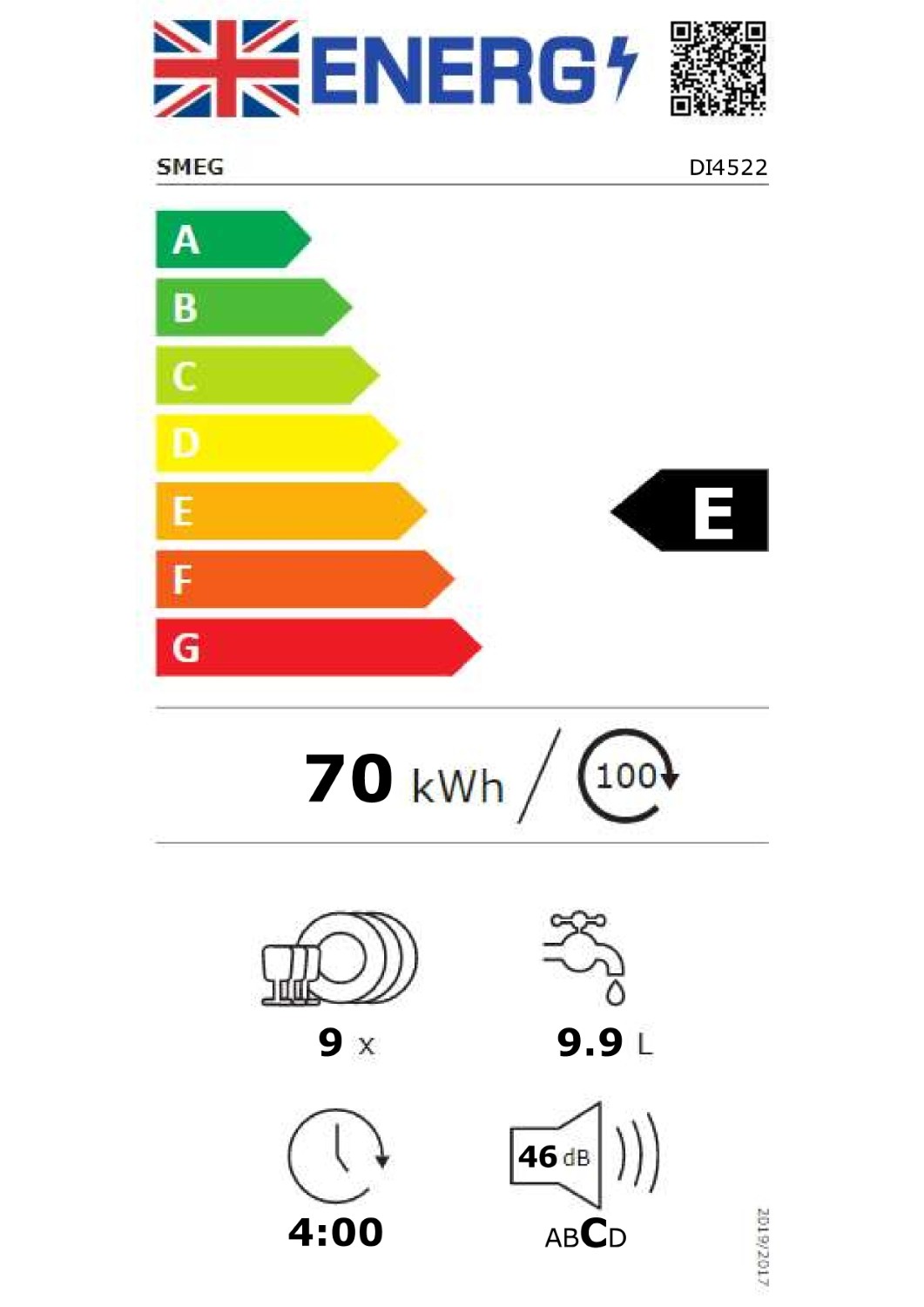 Equipped with Smeg's Total Aquastop technology, the DI4522 provides peace of mind, preventing leaks with use of an automatic shut off feature. Some of the other useful additions are indicators for rinse aid and salt levels, and an acoustic end of cycle signal.
