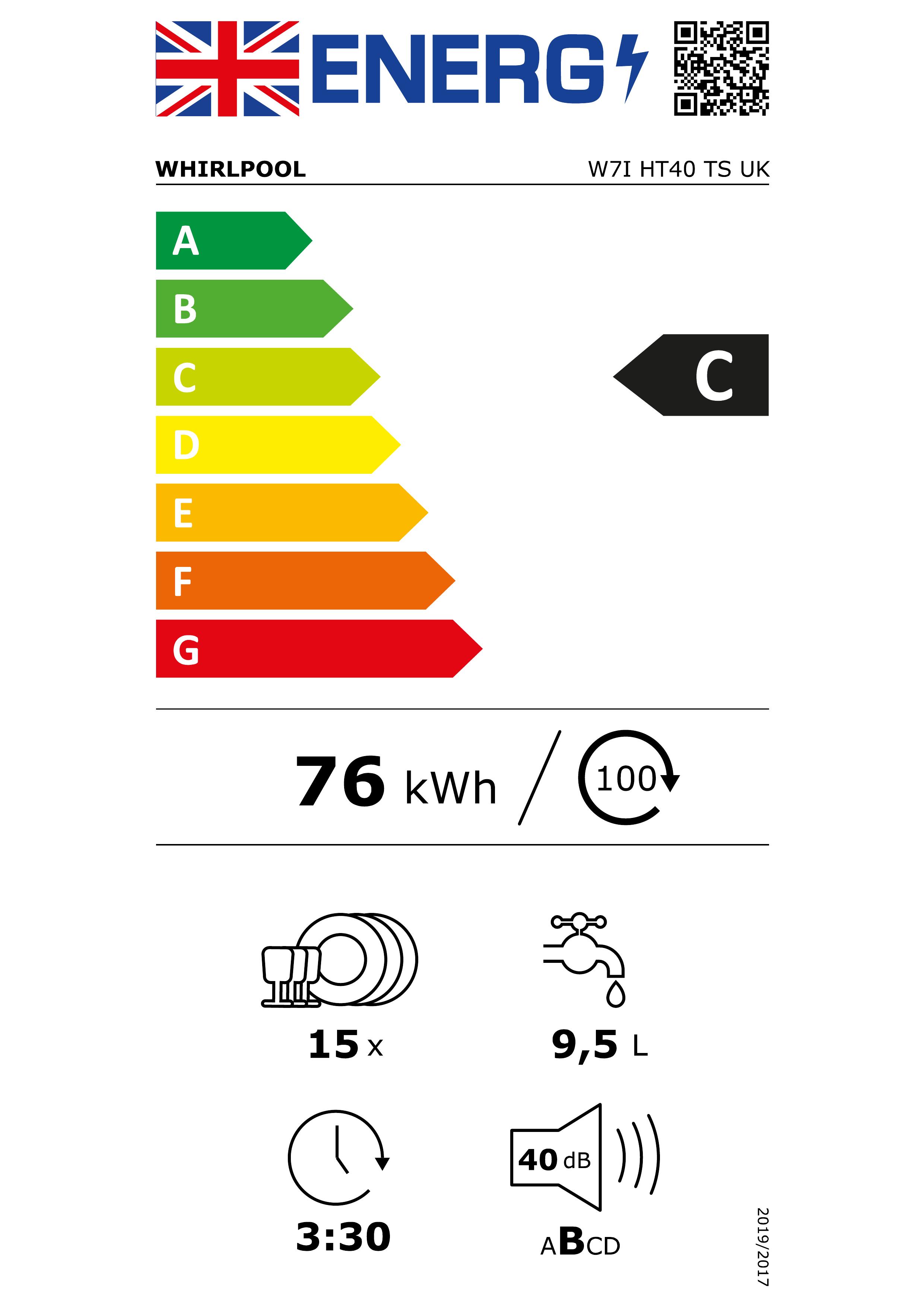 Whirlpool's W7IHT40TSUK integrated dishwasher is perfect for larger households or dinner parties with its impressive 15 place settings capacity. This model combines innovative technologies to provide outstanding cleaning while maintaining energy efficiency.