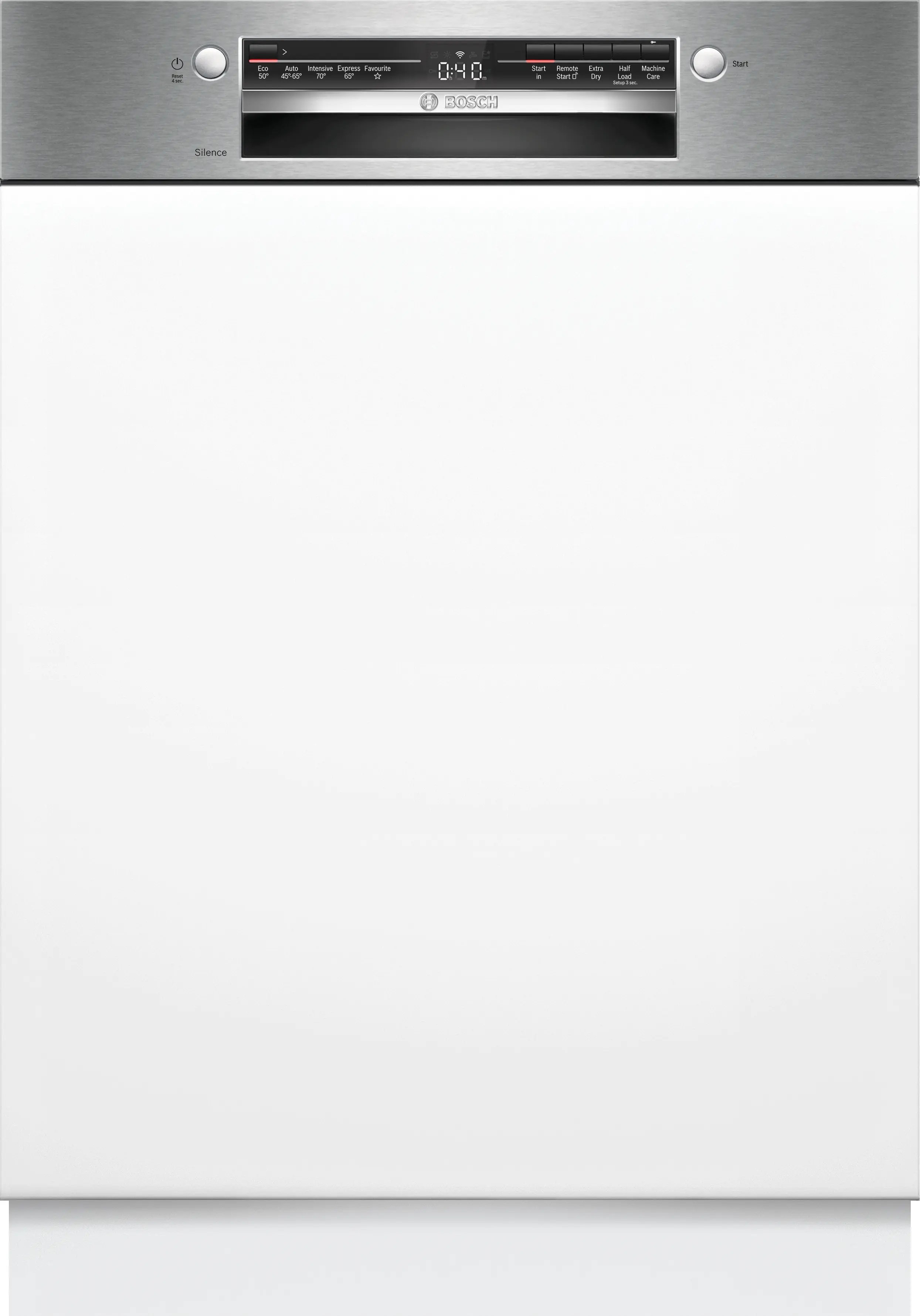 Bosch's SMI2HTS02G semi integrated dishwasher offers a mix of efficiency, advanced technology, and user friendly features. With its brushed steel design, this dishwasher is both a stylish addition to your kitchen and also a practical appliance that ensures sparkling clean dishes with minimal effort.