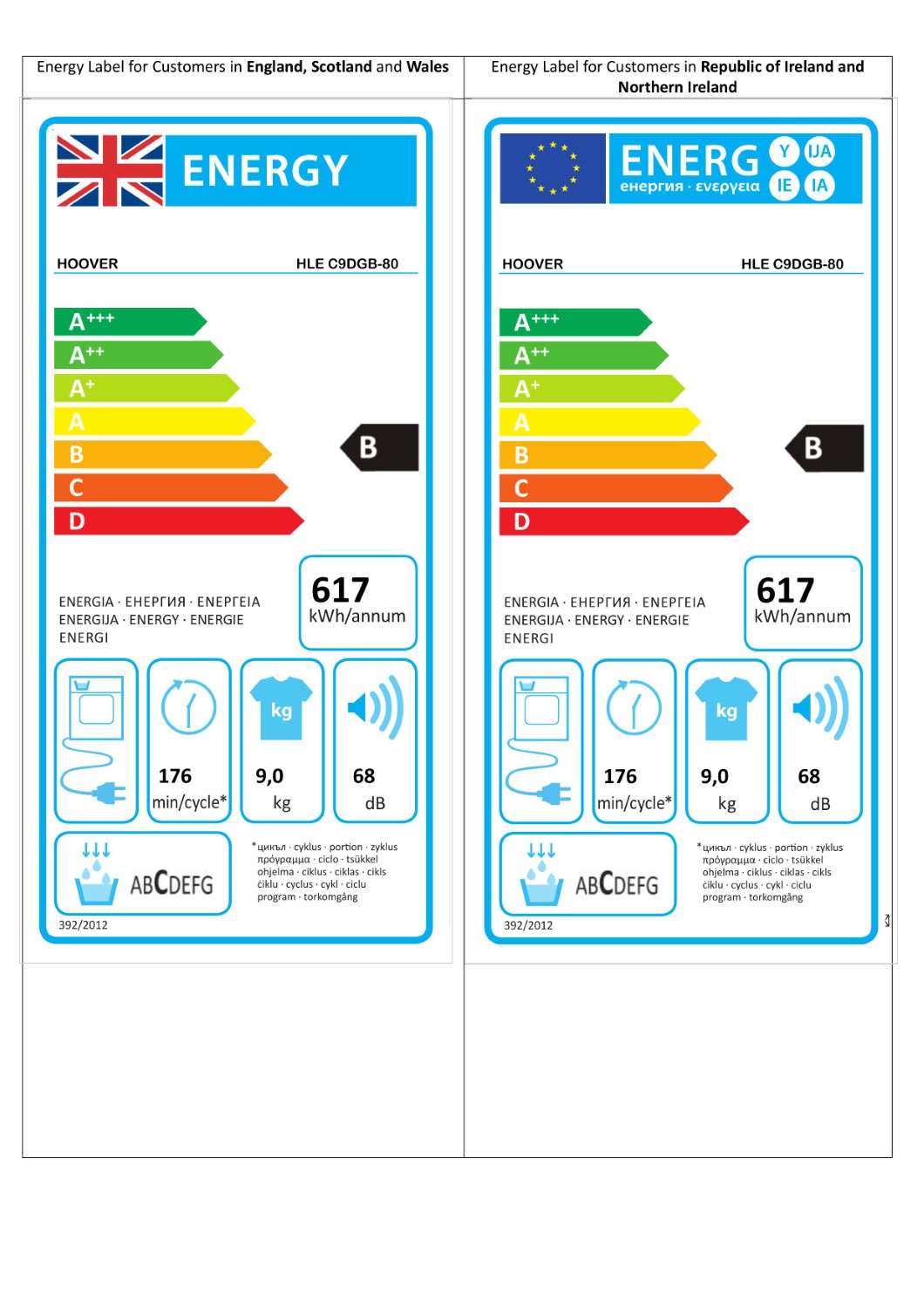 The Hoover HLEC9DGB includes a filter cleaning indicator and a water tank full indicator, making maintenance straightforward. These features help ensure that your dryer continues to operate efficiently and effectively over time.