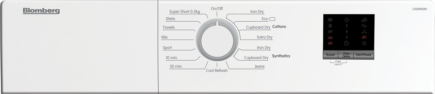 Blomberg have equipped the LTA09020W with 15 drying programs, including options for cottons, synthetics, wool, and delicate fabrics. Programs such as Cotton Extra Dry, Cool Refresh, and Towels cater to a variety of fabric types, making it easy to select the perfect cycle for any fabric.