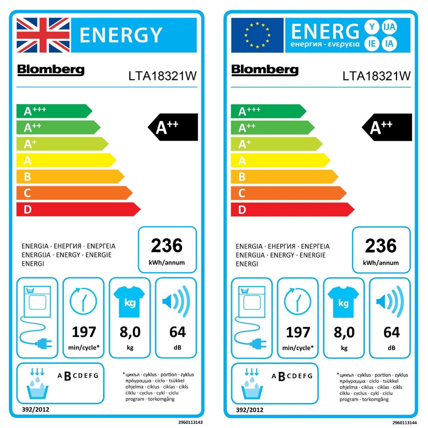For added peace of mind, Blomberg's LTA18321W comes with a 5 year warranty (upon registration), ensuring long term reliability and support. Choose this heat pump tumble dryer for a blend of efficiency, care, and practicality in your daily laundry tasks.