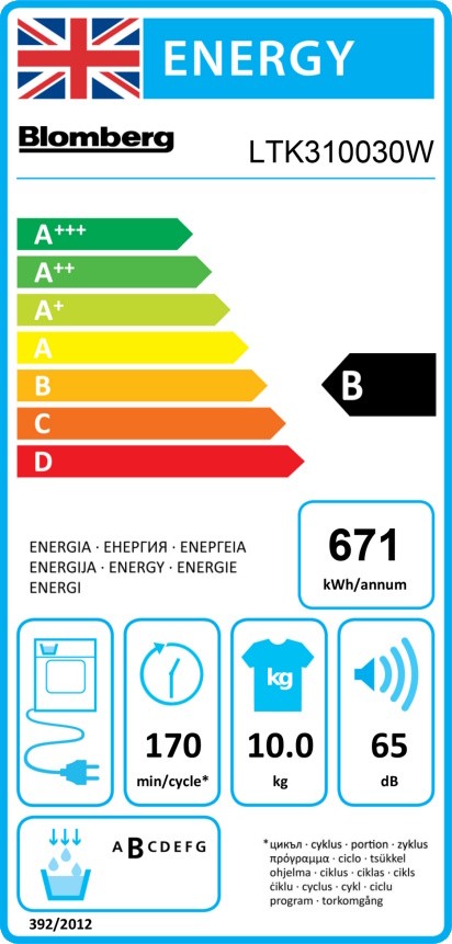The LTK310030W represents the peak culmination of Blomberg's user interface design expertise. A clearly visible time remaining display keeps you in the know, while the interior drum light helps you easily spot that missing sock. The child lock means that you've got extra peace of mind, and the end of cycle buzzer adds reassuring cover against memory loss during everyday use. There are also indicating lights for when your water tank is full and when your dirty filter needs cleaning. These help maintain your ruggedly optimal drying performance, all with less guesstimation.