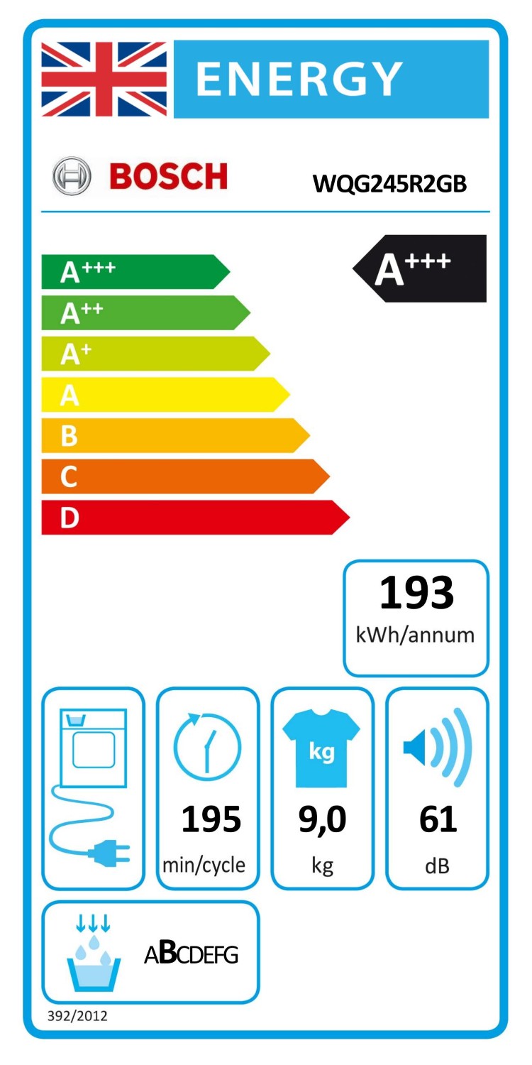 The WQG245R2GB is equipped with heat pump technology, which ensures energy efficient drying while maintaining excellent performance. With an energy efficiency class of C and a condensation efficiency class of B, it offers 88% condensation efficiency, making it a reliable choice for eco conscious users. The AutoDry feature automatically senses when your load is dried, preventing over drying and saving energy.