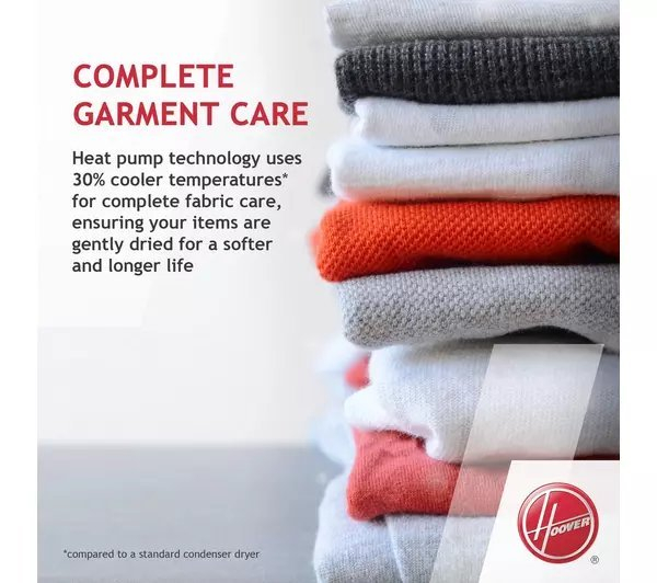 All the Hoover tumble dryers come with four dryness options: Ready to Iron to leave a small amount of moisture in your garments and make ironing easier. Dry Hanger, for garments ready to hang up. Dry Wardrobe for ready-to-store garments. Extra Dry, for completely dry garments.