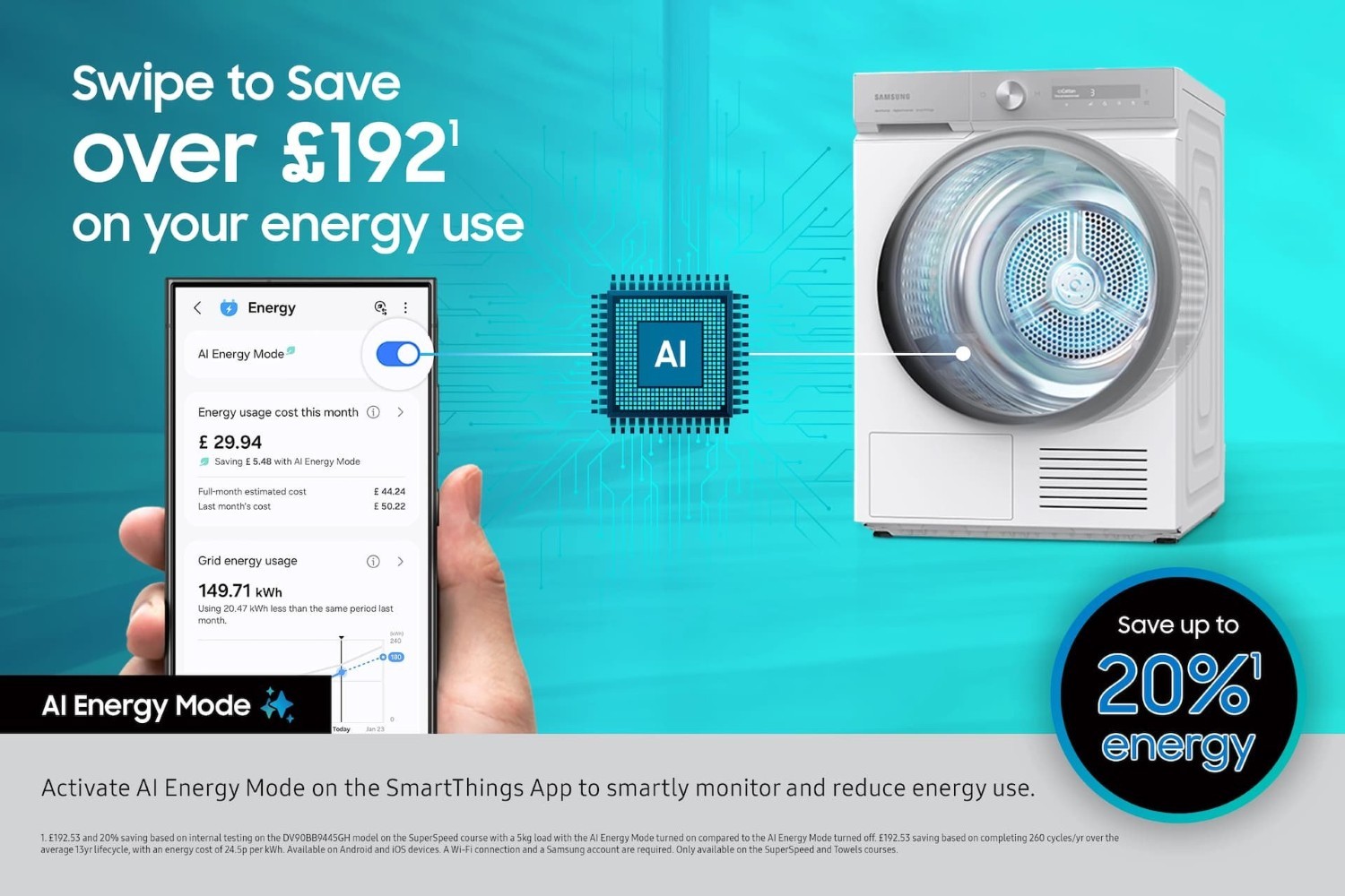 Take control of your drying with Samsung's SmartThings app. This lets you monitor energy consumption in real time, managing settings directly from your smartphone. SmartThings Energy offers tips for reducing energy use and alerts you if any connected appliances are left on. You can even set targets for monthly energy use, and have the appliance alert you if it looks like you might go over.