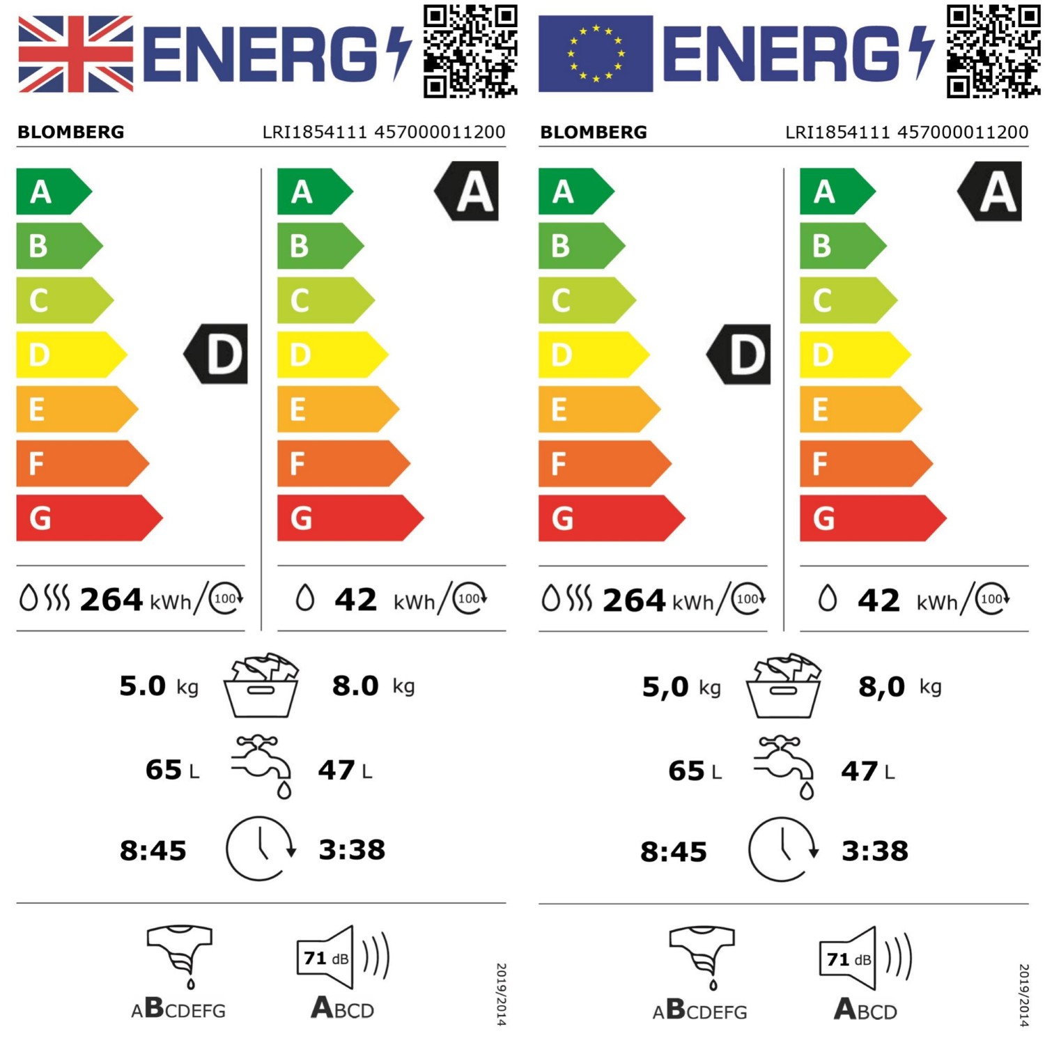 Blomberg's LRI1854111 combines efficiency, convenience, and modern design. With an 8kg washing and 5kg drying capacity, it is perfect for busy households. Its energy saving features, fast cycles, and integrated design make it an ideal choice for UK homes.