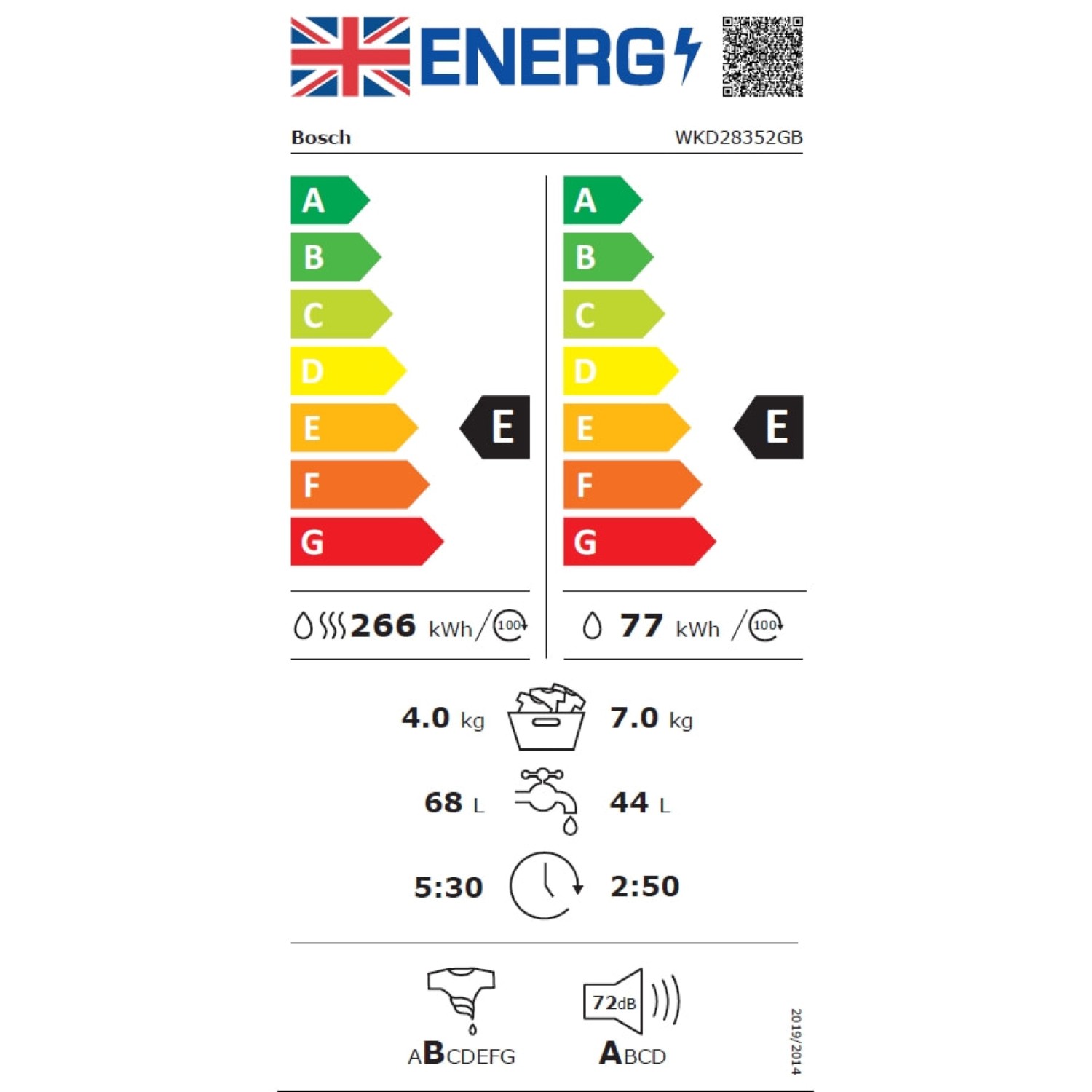 Energy Efficiency Class Wash and Dry: E.
