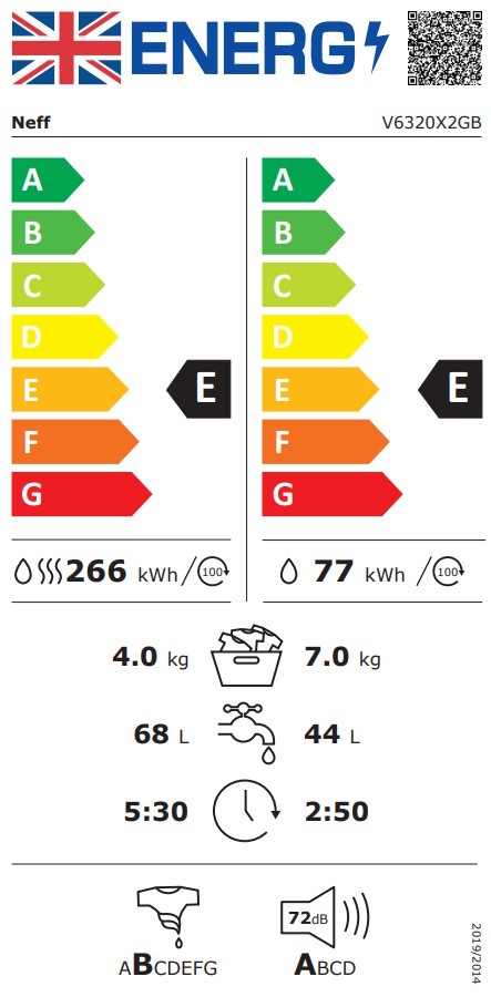 Neff's V6320X2GB integrated washer dryer delivers convenience without compromising on care. It combines a 7kg wash capacity and 4kg drying capacity for practical results.