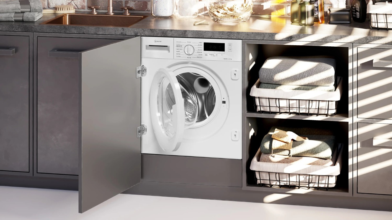 Some safety features of note out of balance control and careful child safety devices, helping keep operation steady, stable and preventing small unintended changes to settings from spiralling into something much, much bigger. Neff's Aquasecure water protection system safeguards against flooding, providing further confidence with reliable day after day performance.