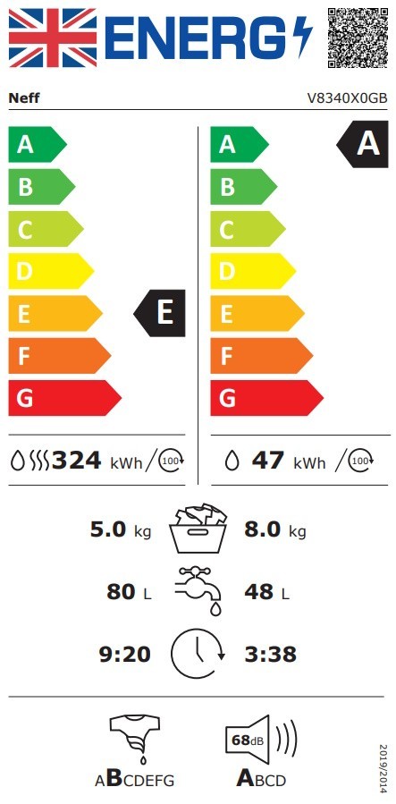 With up to 8kg for washing and up to 5kg for wash and dry cycles, the V8340X0GB is suited to everyday households' mixed care. The ability to handle most laundry in but a single run means you don't have to spend time moving items between appliances, or have to rewash clothes that have been sat in the drum for too long.