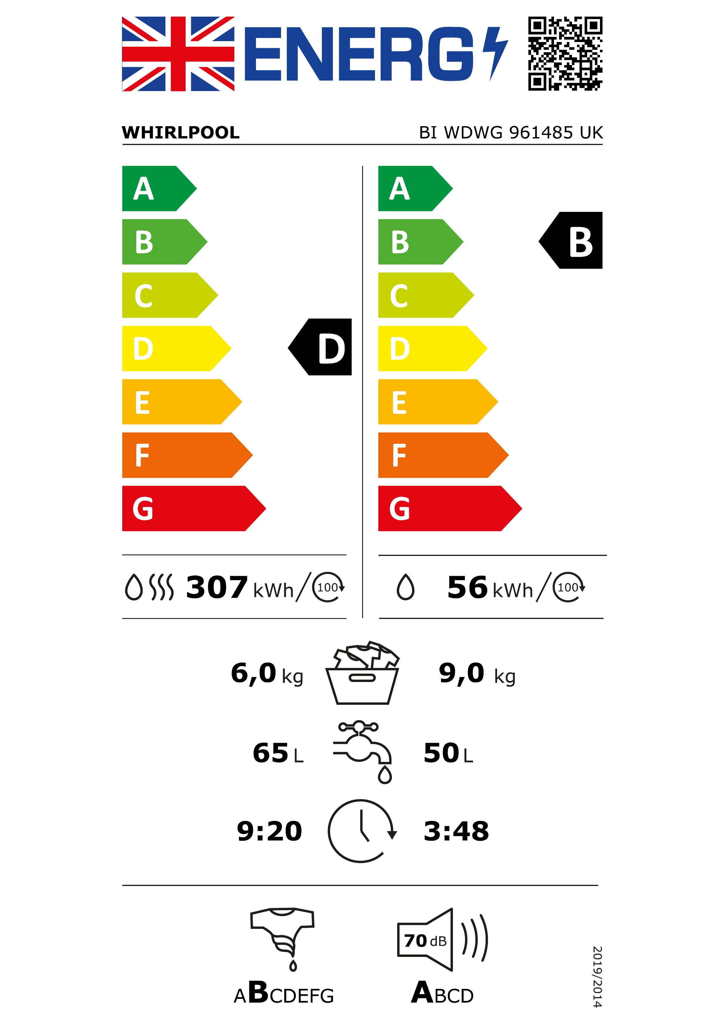 With a washing capacity of 9kg and a drying capacity of 6kg, the BIWDWG961485 provides ample space for handling larger loads of laundry. This dual function design means that you can wash and dry your clothes efficiently, a perfect solution for busy households looking to save time and effort.