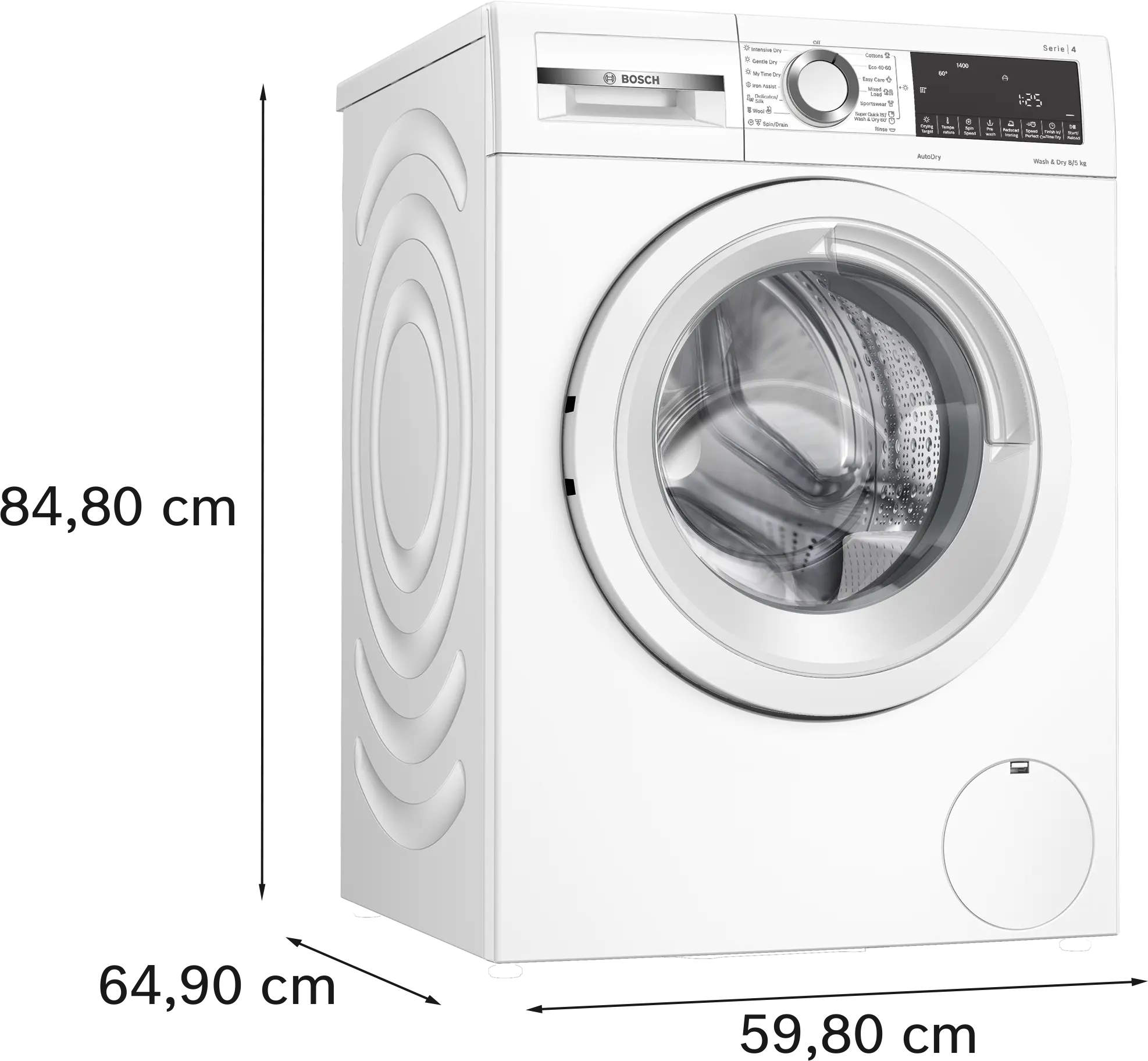 The Bosch WNA134U8GB washer dryer delivers efficient laundry care with an 8kg washing capacity and 5kg wash and dry capability. Designed to wash and dry in a single cycle, it simplifies your routine while advanced features like iron assist and autodry ensure clothes come out fresh, dry and ready to wear.