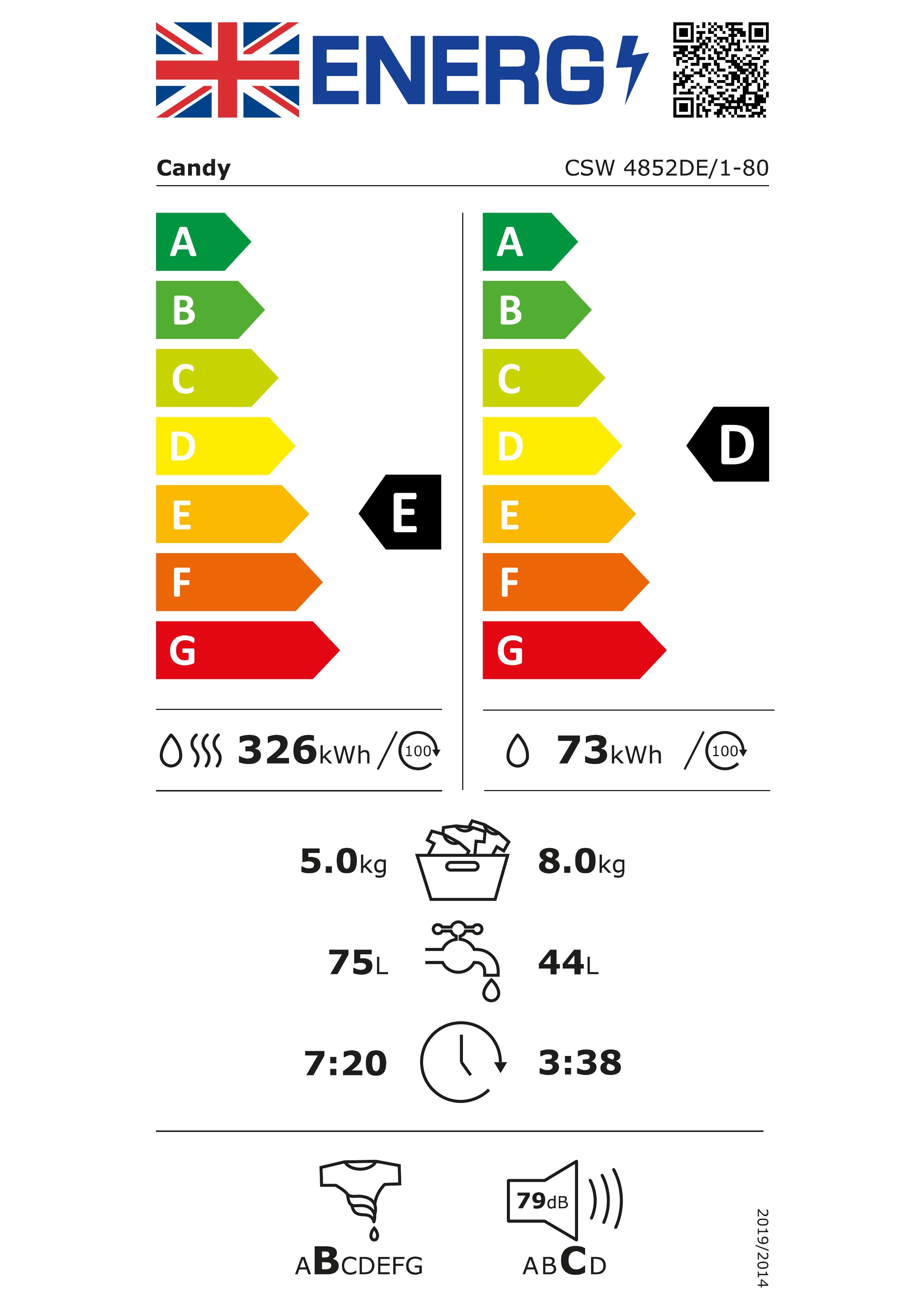 Candy's CSW 4852DE/1-80 washer dryer is the ideal appliance companion for modern living. With its combination of advanced technology, user friendly features, and ample capacity, it simplifies your laundry, all while providing excellent washing and drying performance. Whether you're washing everyday items or more delicate fabrics, this machine caters to all your laundry needs with ease.