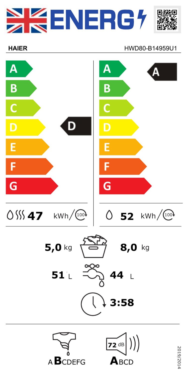 | Washer Dryer Features: | 30 Mins or Less Wash, 60 Mins or Less Wash & Dry, Anti-Flood Device, Delay Start, Delicates Wash, Extra Quiet, Fluff Removal Program, Hand Wash, Sensor Drying, Smart, Sportswear Wash, Steam Function, Time Remaining Display, Touch Screen, WiFi, Wool Mark |