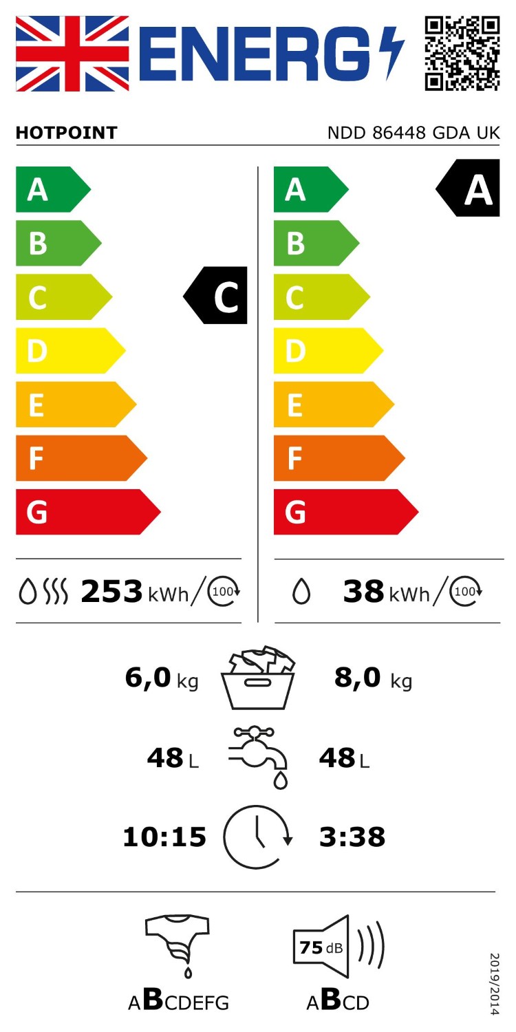 Hotpoint's NDD86448GDAUK washer dryer is designed to handle both washing and drying with ease. Featuring advanced ActiveCare technology, this washer dryer ensures effective stain removal and optimal drying results, making it an excellent choice for those seeking convenience and performance in one package.