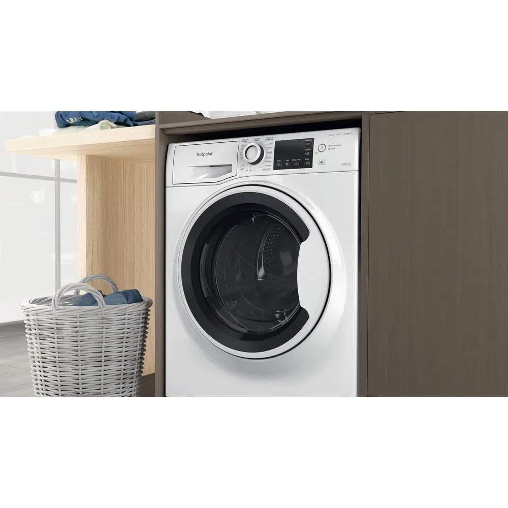 Hotpoint's Anti Stain technology effectively removes stains without pre treatment, ensuring uniform drying even for large items. The Digital Motion Technology, featuring a brushless inverter motor, provides 10 different drum motions during a wash cycle, each tailored to treat various stains, leaving your laundry spotless with just one wash.
