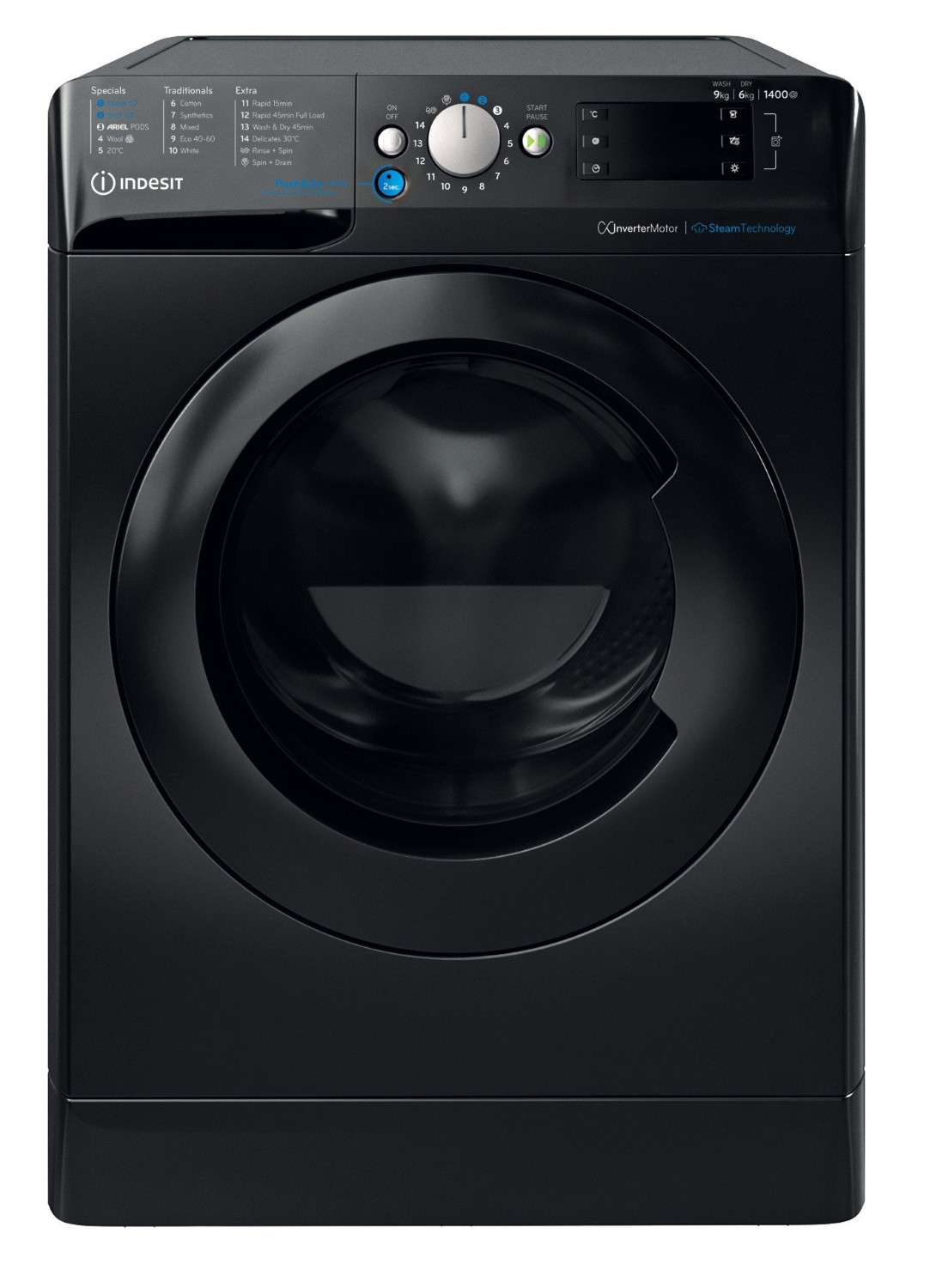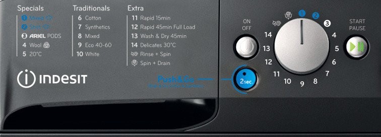- Wash & Dry with one button press with Push&Go