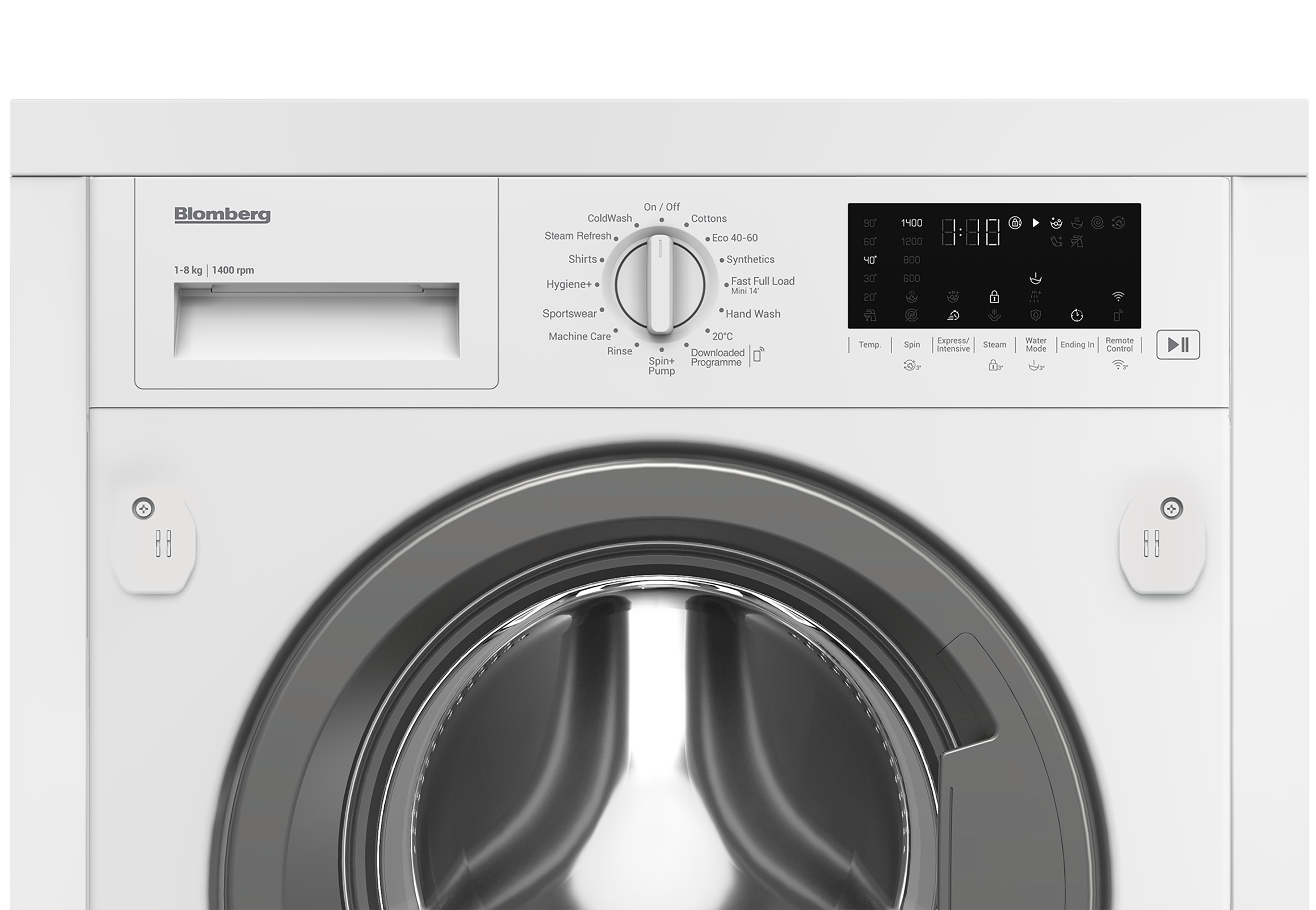 Introducing the Blomberg LWI284420 8kg 1400 Spin Integrated Washing Machine. This built-in appliance is designed to fit seamlessly into your home, offering top-tier features like an Optima Inverter Motor, Fast Full Load program, and Steam Refresh to make your laundry routine effortless.
