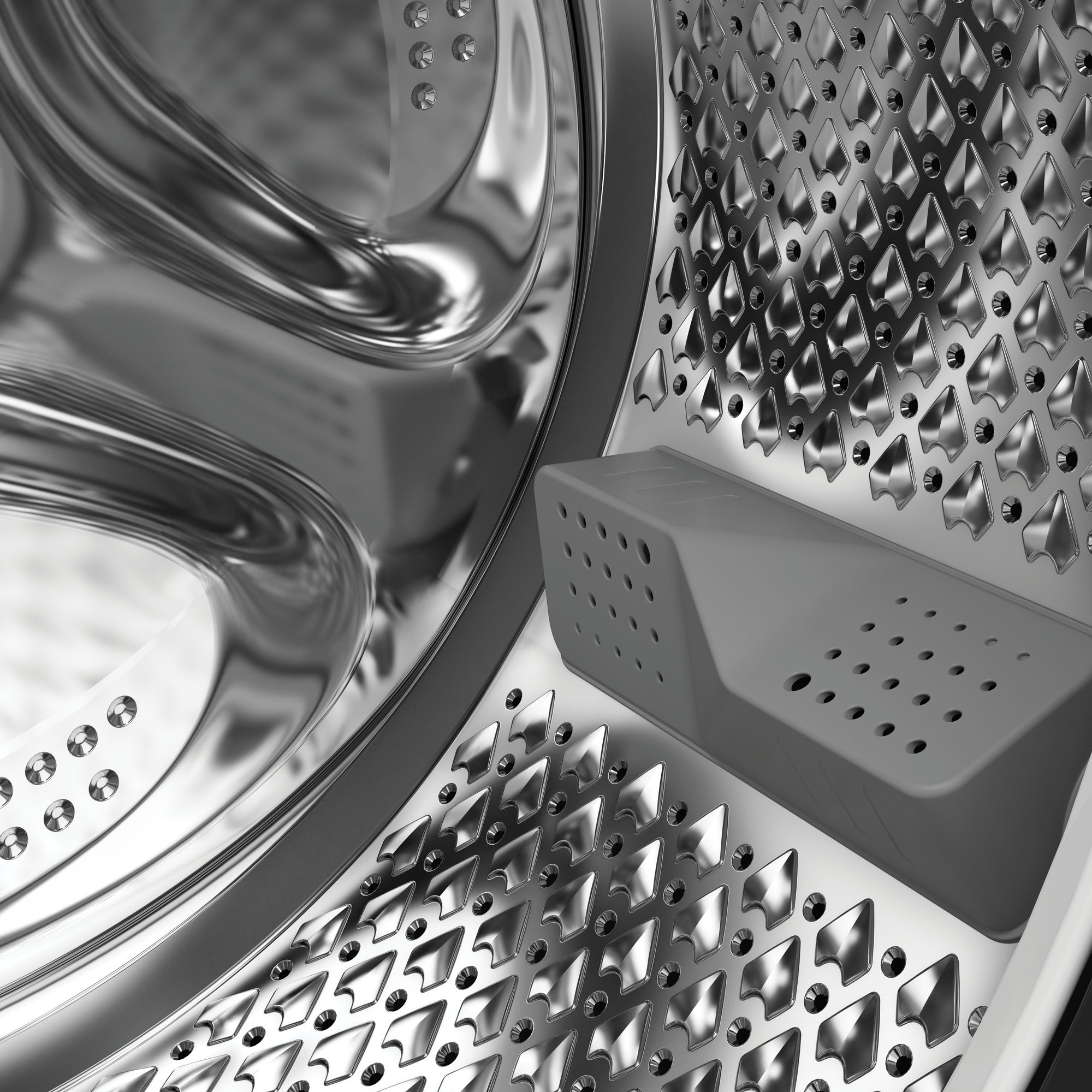 With the Fast Full Load programme, you can wash an entire load quickly, perfect for busy schedules. The Steam Refresh feature rejuvenates your clothes, reducing wrinkles and eliminating odours, so your garments are fresh and ready to wear straight from the machine. Just pop the clothes in and let the washing machine do its thing!