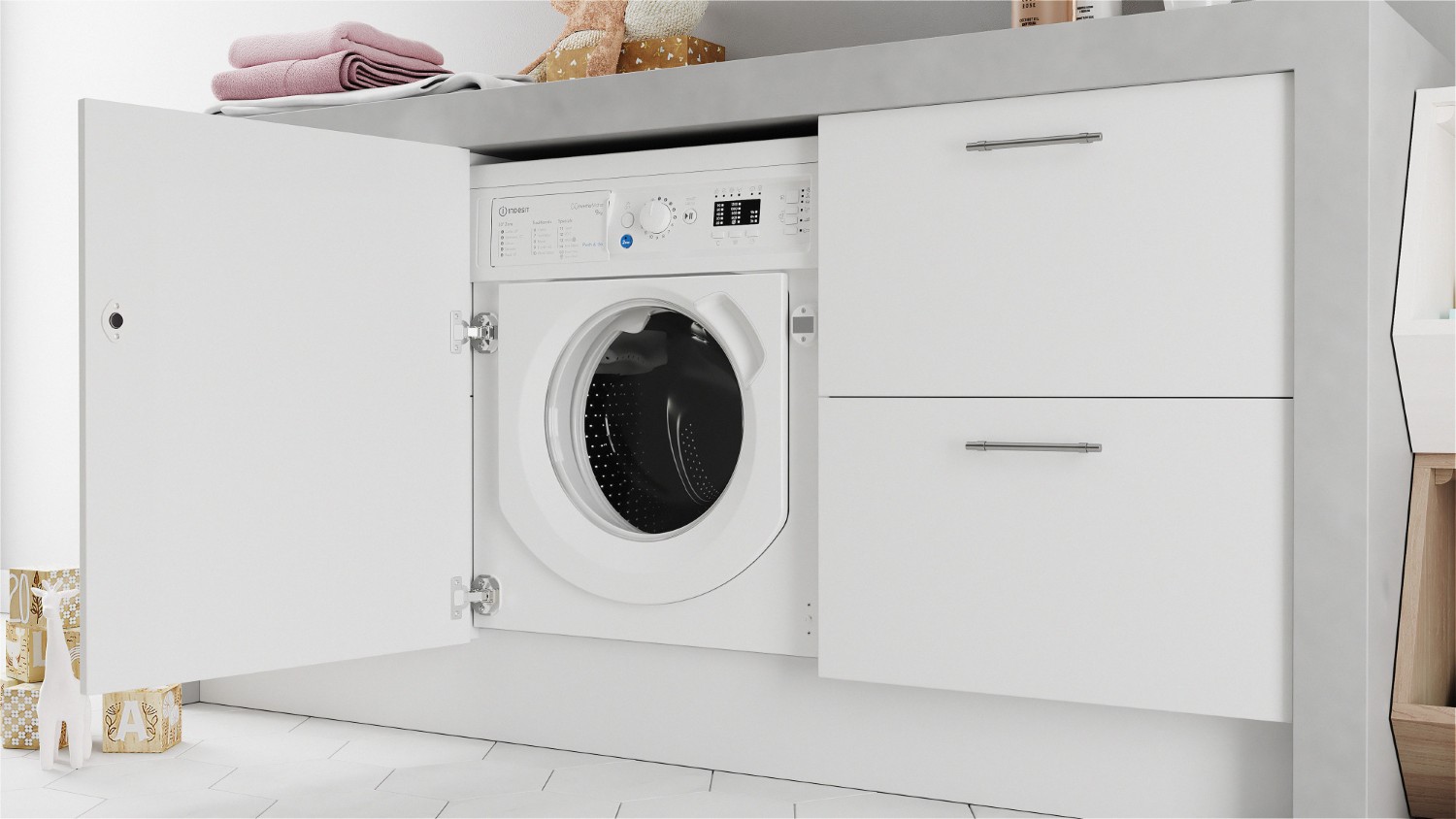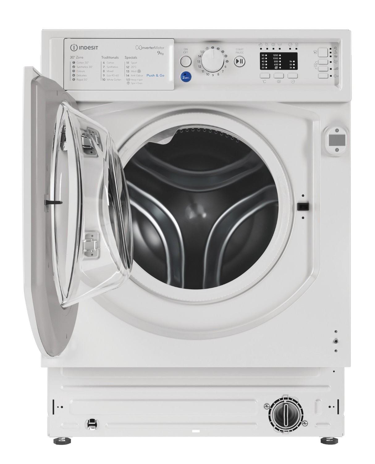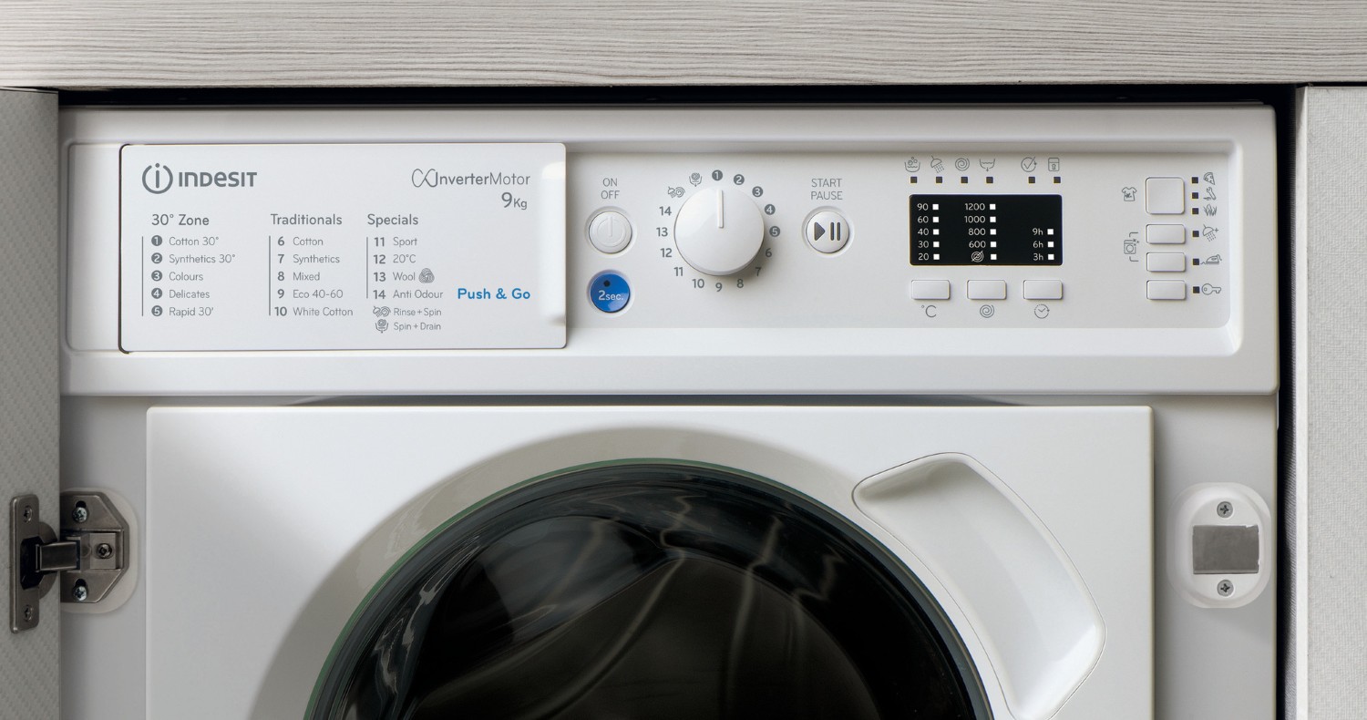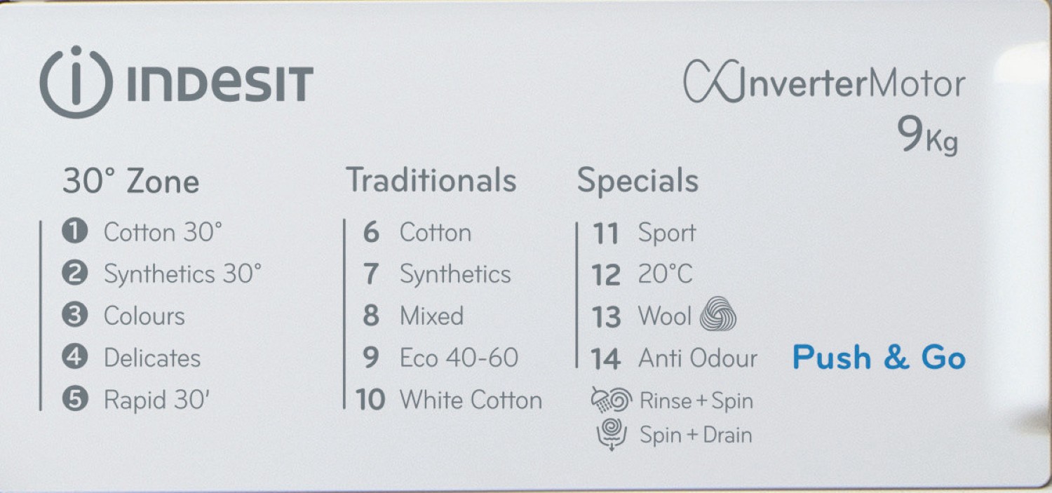 Indesit's Push&Go feature is of particular note, allowing you to remove over 20 common stains, without pre treatment, in just 45 minutes. Simply press and hold the blue button for two seconds, and the machine automatically starts a daily 30°C cycle, making it easy for everyone in the family to contribute to laundry chores.